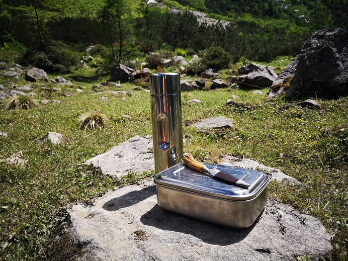 Wenn du nur ein, zwei Stunden unterwegs bist, reicht oft eine kleine Jause: ein Apfel, ein Müsliriegel, ein paar Nüsse. Dazu eine kleine Trinkflasche – fertig. Wichtig ist, dass du nicht mit leerem Magen losgehst. Der Berg verzeiht keine Frühstücksskipper!