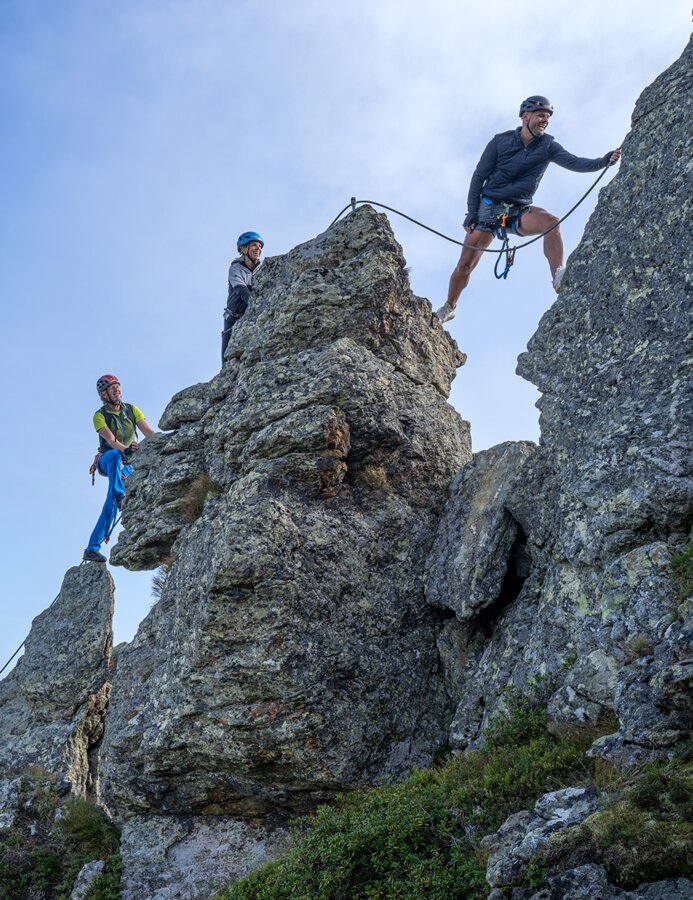 You can choose from seven different via ferratas at Salzburger Sportwelt alone. All adventure seekers who prefer to keep things a little less challenging should visit one of the three high rope courses. In the region of Schladming-Dachstein high rope courses, mountaineering classes and various via ferratas will give you that special kick. In Gastein, climbing fans will be in awe. Be it along ridges, across vertical rock faces or at secured climbing crags: Bad Gastein, Klammstein and Dorfgastein offer a lot of different options for sporty holiday guests.