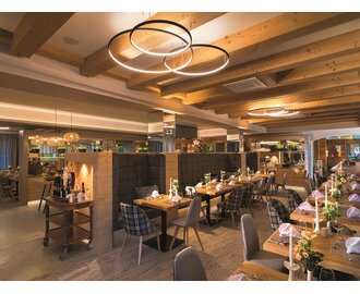 The ‘Alte Stadl’, the charming ski and alpine hut of the Familienhotel Austria, is located in the middle of the fantastic mountain world of the Schladminger Tauern in Styria right next to our hotel and at the valley station of the Hochwurzen summit lift and is easily accessible by car. Let us spoil you with regional cuisine in the pleasant ambience of the Stadl. Sit together comfortably, enjoy local delicacies and talk about God and the world - our ‘Alter Stadl’ offers the perfect place for this with its rustic and cosy atmosphere.