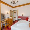 Our exclusive double rooms Alpine with balconies (32 - 35 m2) offer a wonderful panoramic mountain view. These rooms are furnished with a double bed, a cozy seating area and a double sofa bed. The bathroom is equipped with a tropical rain shower / toilet, hairdryer, toiletries, bathrobes, bath towels and slippers. Minibar, safe, telephone with laptop connection, HD flat screen TV are available.