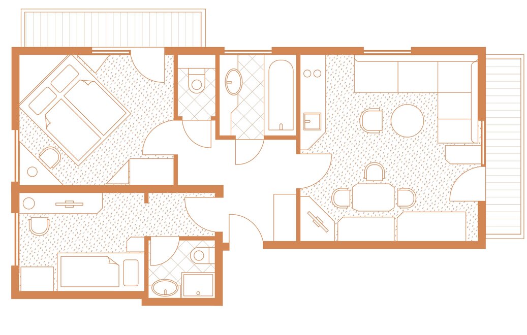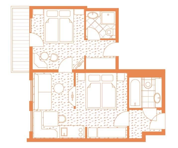 toaletní potřeby, varná konvice, WiFi, možnost vaření, automatické buzení, balkonový nábytek, povlečení pro alergiky, lednice, kávovar, balkón, skříň, koupací plášť na přání, rodinný pokoj, sejf, předsíň, salonek, kabelová TV, digestoř, další pokoj, nekuřácký pokoj, elektrický krb, mrazicí box, samostatný obytný prostor, vlasový fén, oddělený obýv./ložnice, samostatná ložnice: 2, telefon