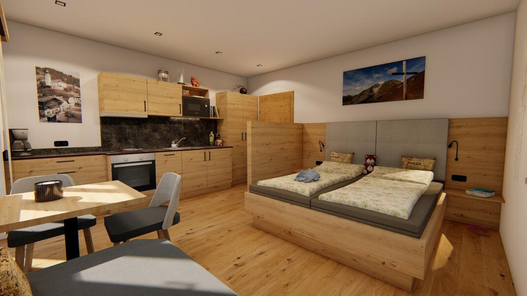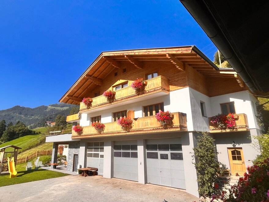 Apartmán Schaidreit (4 až 10 osob) s vlastním vchodem (110m²); zdarma W-Lan ve všech pokojích. velká obytná kuchyně (23m²) s velkým jídelním stolem, balkon přes celé patro s nádherným výhledem na hory a na východ slunce, 3x velké ložnice: 3x manželské postele, 1x jednolůžko, 2x rozkládací sofa, 1x pohovka na sezení; 2x koupelny s vanou, sprchou, dvojitým umyvadlem, 2x WC; velká předsíň vybavení kuchyně: Velký jídelní kout, myčka na nádobí, lednička, elektrický sporák s troubou, dřevěná kamna pro zvlášť útulné teplo, 2x satelitní TV ložní prádlo a dostatek ručníků, na požádání také dětská postýlka, vysoká židle Nabízíme také službu pečiva a produkty z našeho dvora. Srdečně vás vítáme v apartmánu Schaidreit!