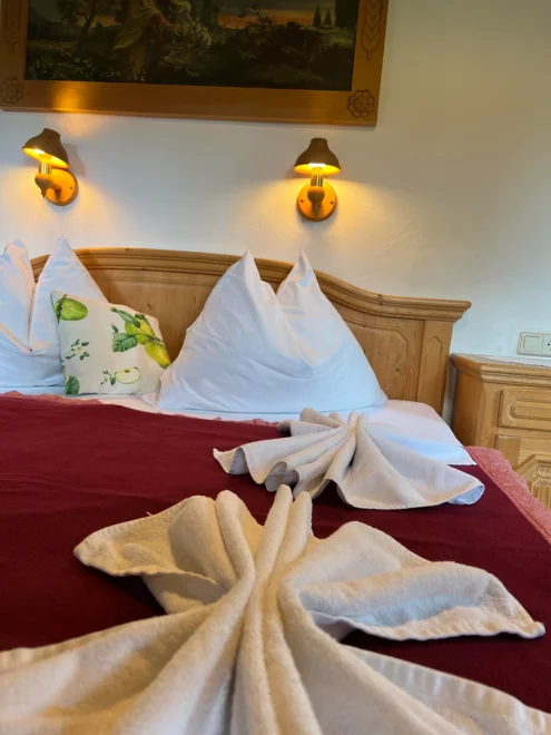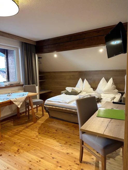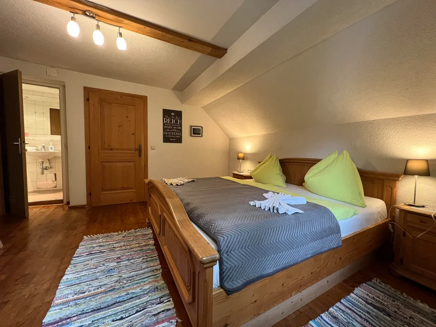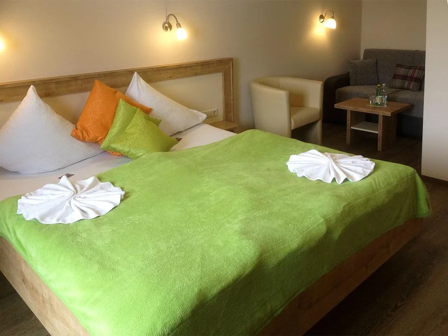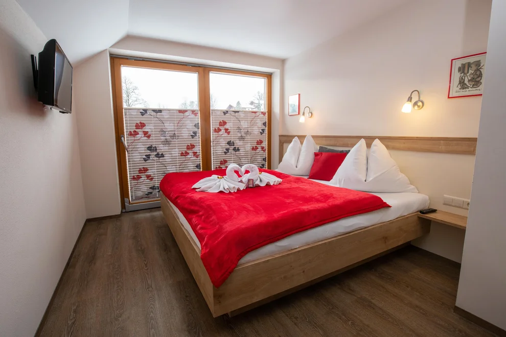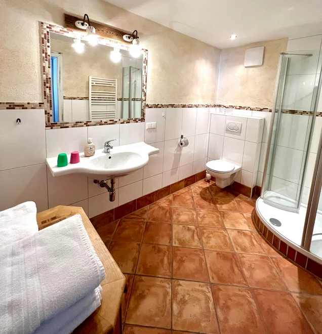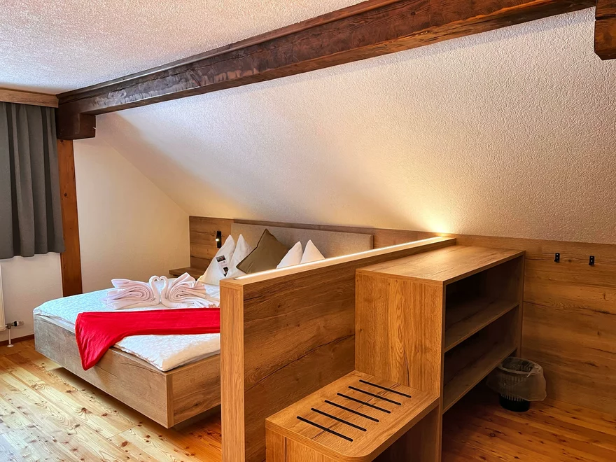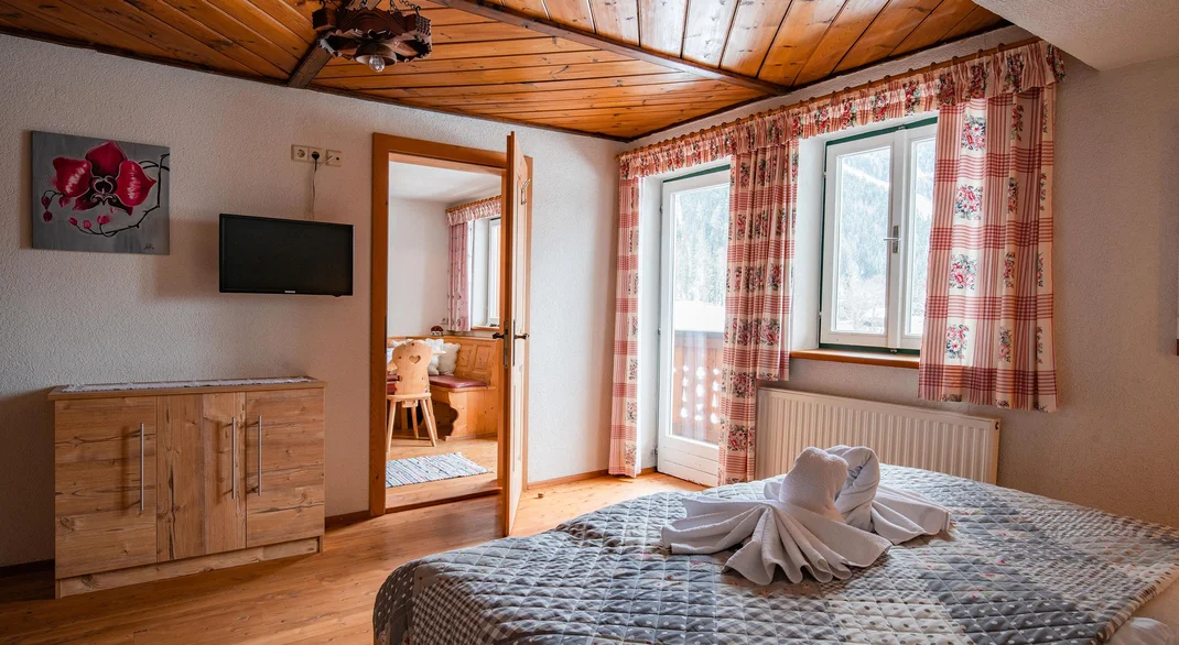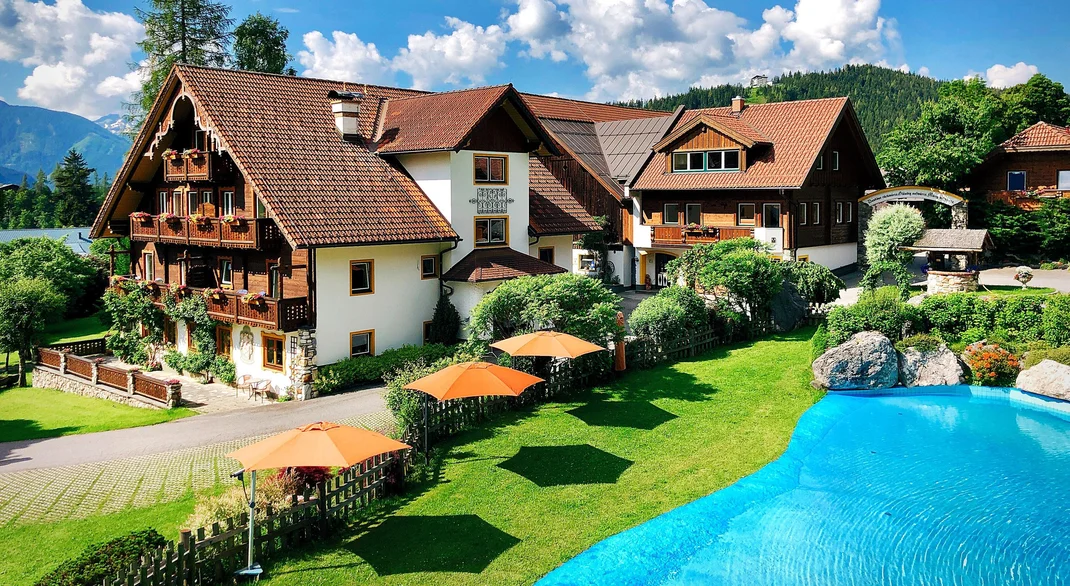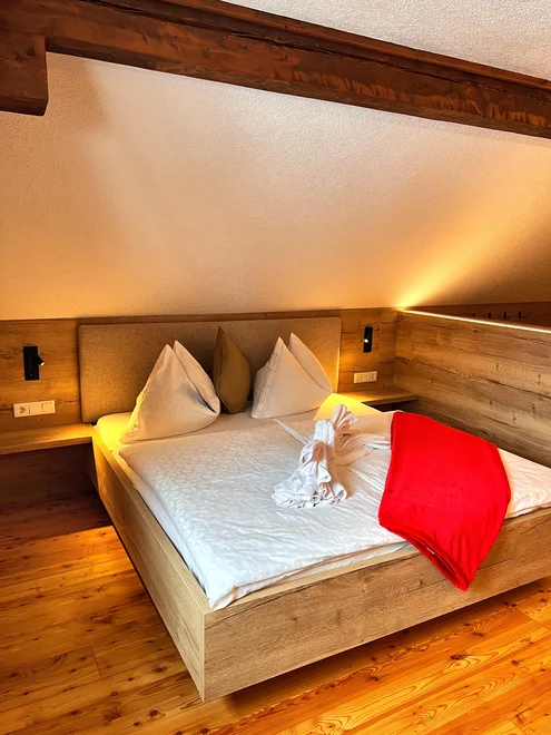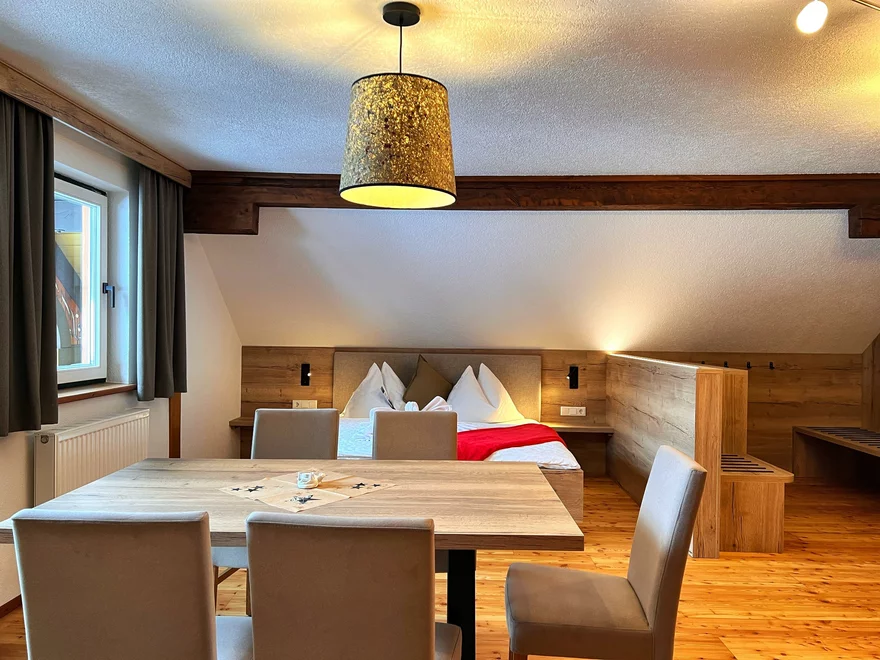 Pěkně zařízené pokoje mají všechny samostatnou koupelnu a oddělený prostor k sezení s kávovarem, kde najdete dostatek místa a prostoru na příjemné posezení u kávy. Z balkonu si vychutnáte nádherný výhled na naši skvělou zahradu, na Schladminger Tauern a na úchvatné horské pozadí Dachstein.