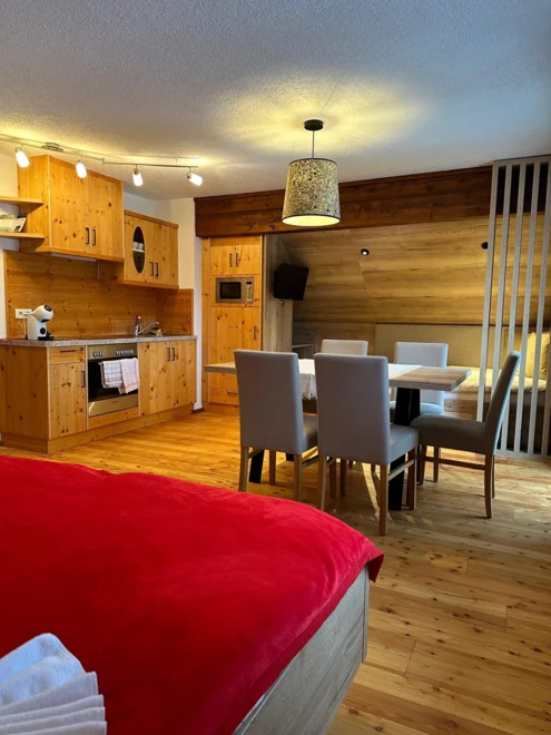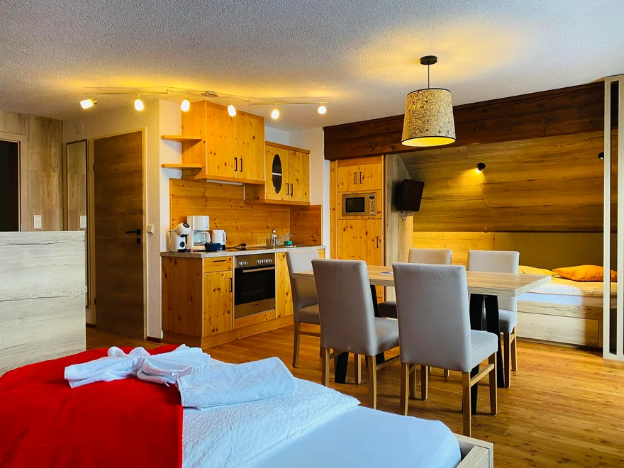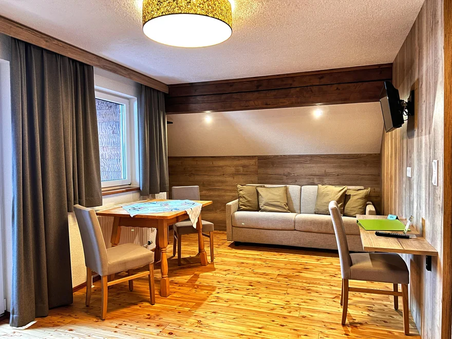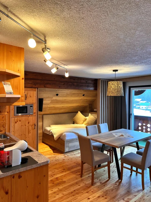 Naše světlé apartmány, s plně vybavenými kuchyněmi, nabízejí dostatek prostoru pro útulné setkání celé rodiny. Hosté našich apartmánů mohou ráno využít denní službu s pečivem z vlastní ekologické pekárny nebo bufetovou snídani.