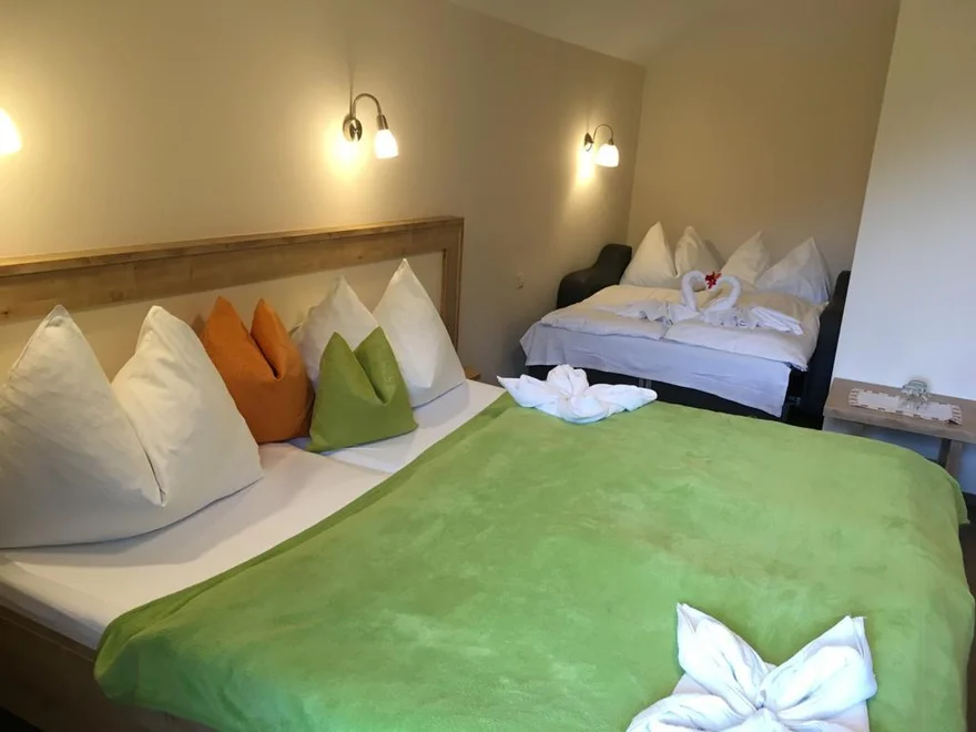 Rodinný pokoj o velikosti až 45 m²! Sprcha/WC, TV, kuchyňký blok s 2 vařiči, lednička s malým mrazákem, dřez, nádobí, rychlovarná konvice, filtr na kávu! Sedací souprava, balkon!