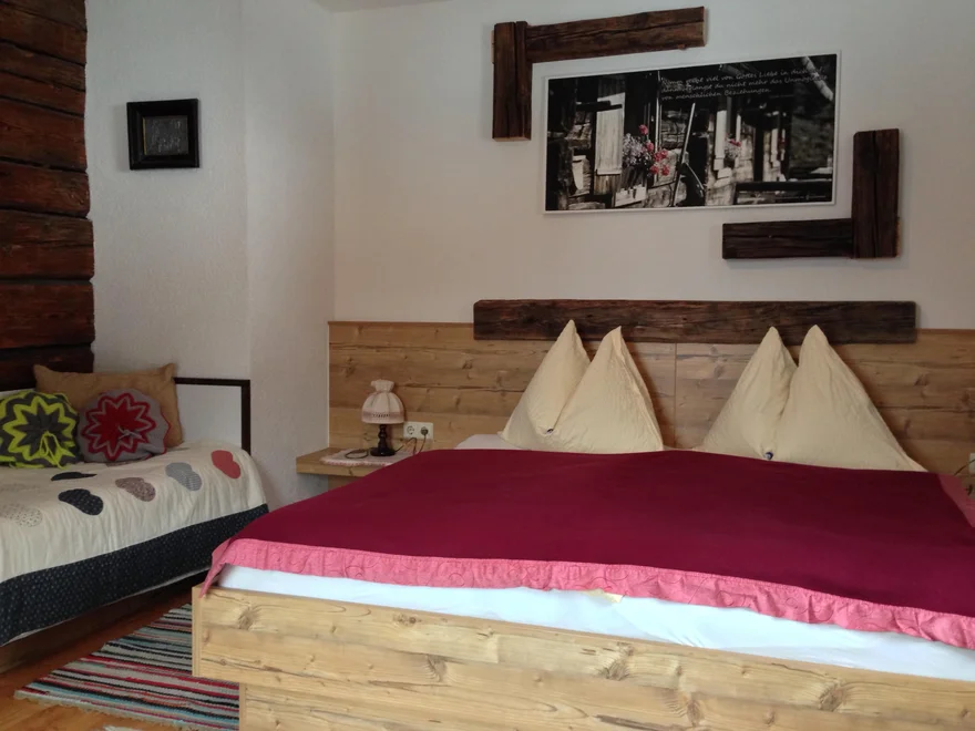 Milé, velmi příjemné rodinné pokoje o rozloze cca 35-40 m² - pro 2 - 4 osoby. Rustikálně jednoduché a útulně zařízené / manželská postel a rozkládací pohovka.
