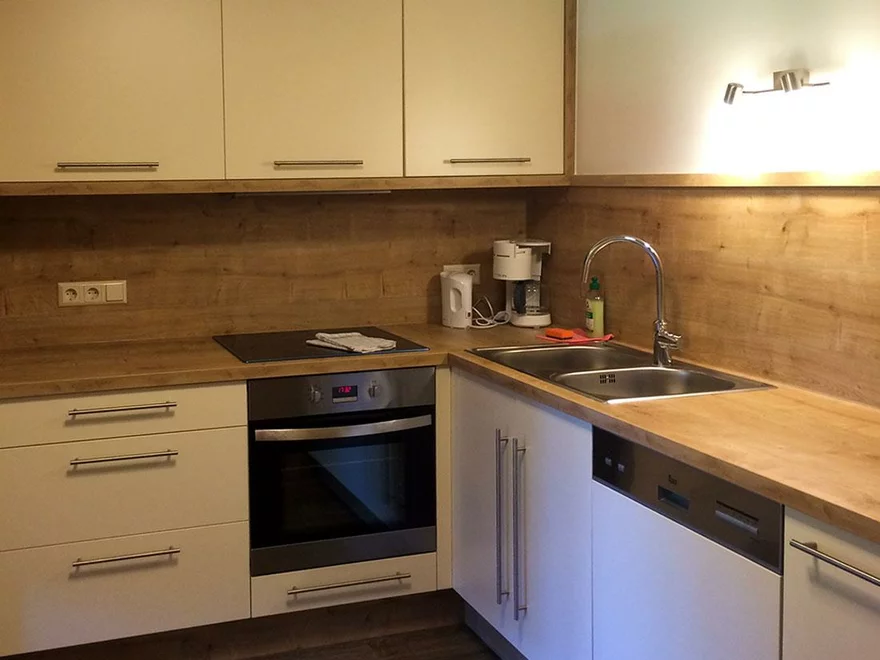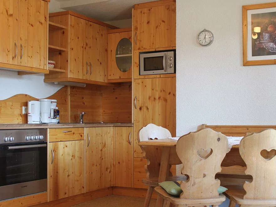 Apartmán "Lina": krásná obývací kuchyně na jižní straně s balkonem (4plotnový sporák, trouba, malá mikrovlnná trouba, lednička, dřez, nádobí, žádná myčka na nádobí), ložnice rodičů/dvoulůžko, dětský pokoj se patrovou postelí a jednolůžkem, plochá obrazovka TV / WiFi a jižní balkon, panoramatický výhled!
