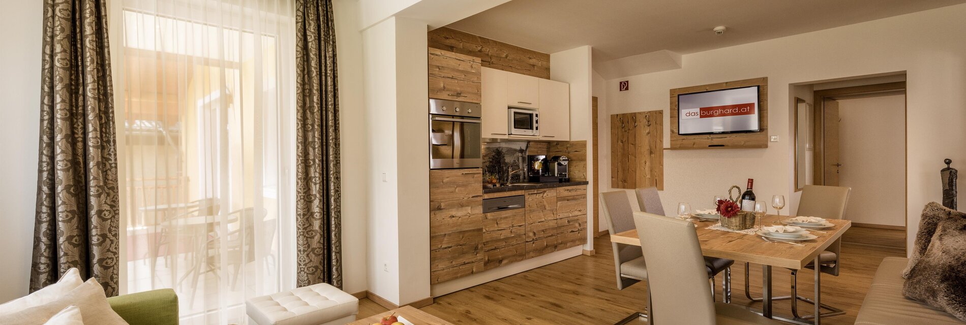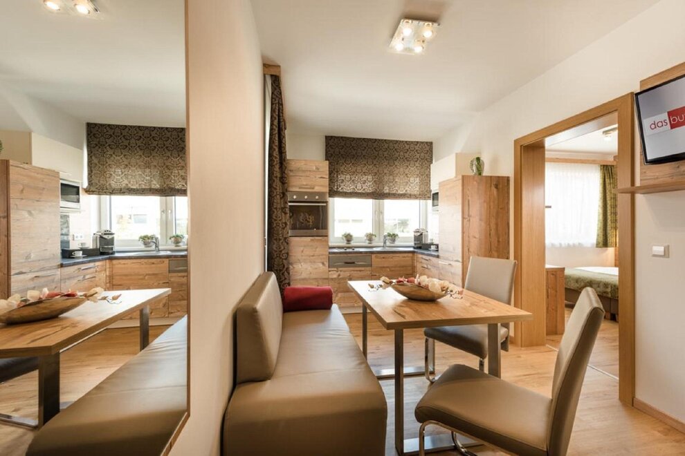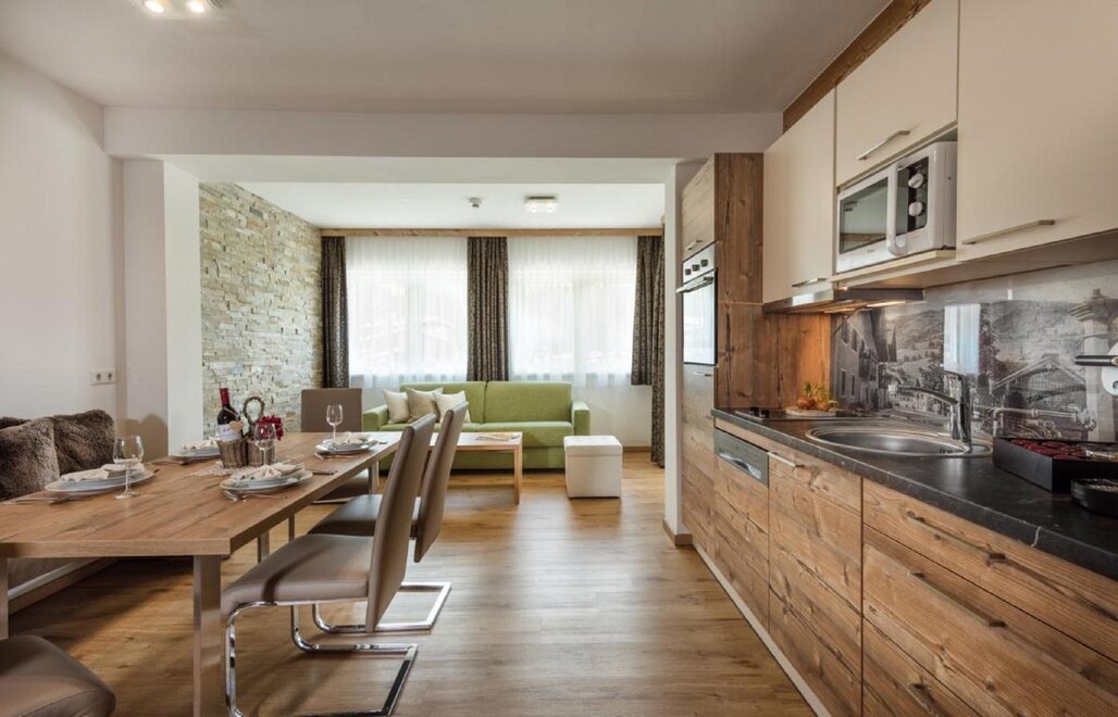 Prostorné, světlé a ideální pro rodiny. Apartmán Wagrain (73,6 m²) nabízí dvě ložnice, velkou kuchyň, prosvětlený obývací prostor s jídelním stolem a rozkládací pohovkou, stejně jako vaši osobní infrasaunu. Pohodlné bydlení s prostorem.