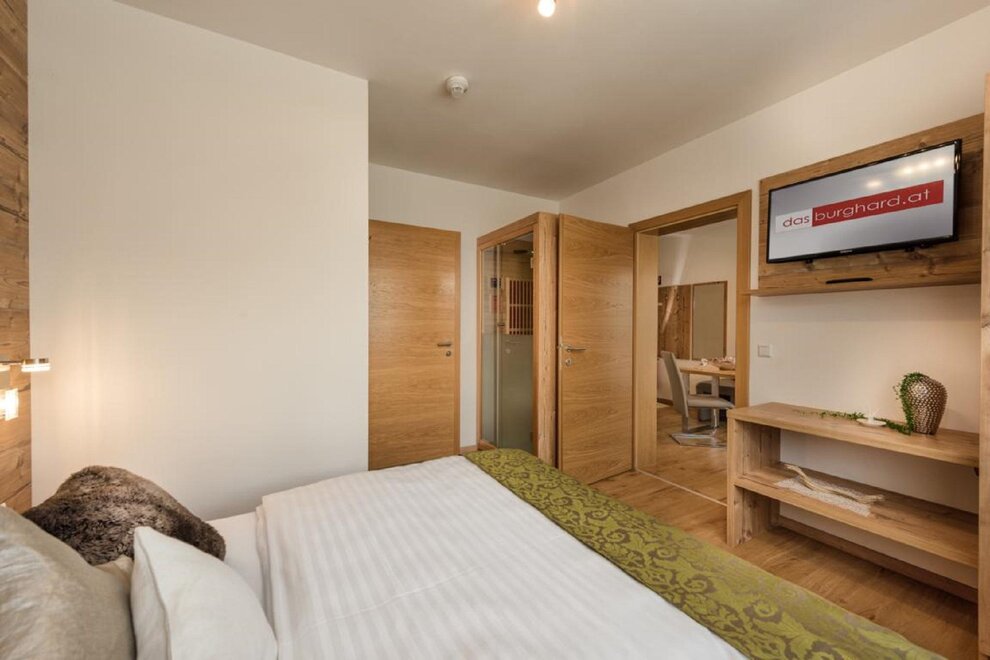 Úplně nahoře, spousta prostoru. Apartmán Obertauern (84,4 m²) v podkroví nabízí dvě velké ložnice, dvě koupelny, obývací prostor s kuchyní, balkon a soukromou infračervenou kabinu. Perfektní pro rodiny nebo přátele, kteří milují prostornost a komfort.