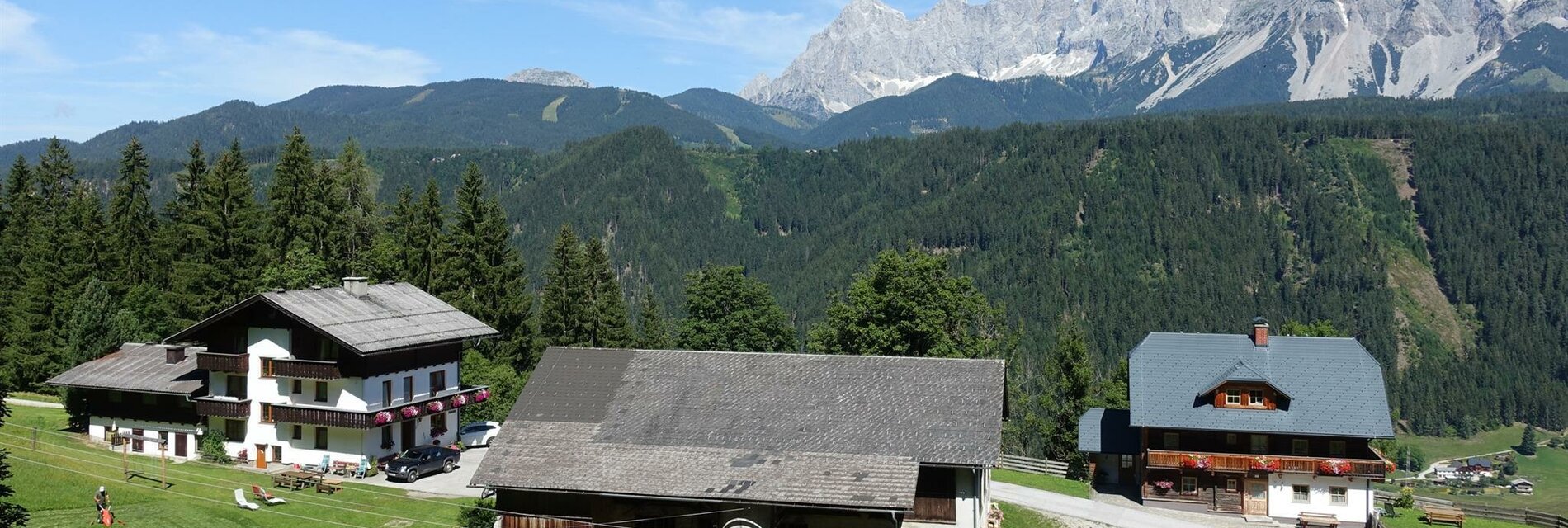 Naše rodinná farma je zážitkem pro všechny věkové kategorie. Příjemná louka na ležení s nádherným výhledem na masiv Dachstein zve v létě k relaxaci. Cyklisté, turisté a milovníci přírody si v regionu Schladming Dachstein přijdou na své. Naši malí hosté si na naší farmě také užijí. Těší se na vás mimo jiné mnoho mazlivých zvířat, hřiště s trampolínou, skluzavkou, gokarty a mnoho dalšího. Pohádková stezka s chaloupkou čarodějnice, Sněhurkou a paní Holle je také jen pár kroků od našeho statku.