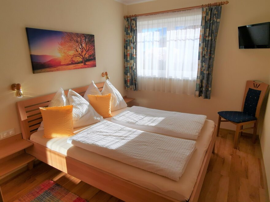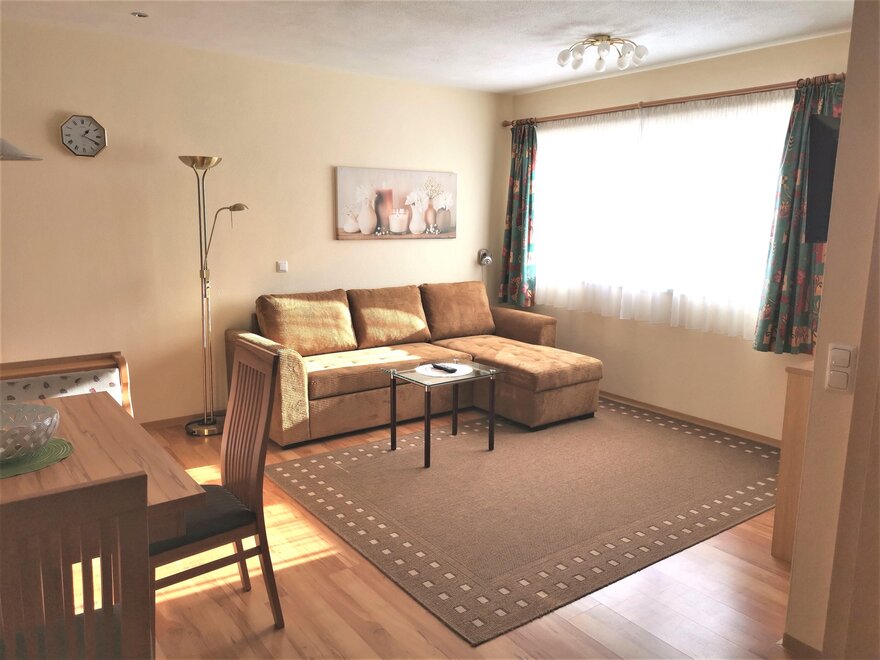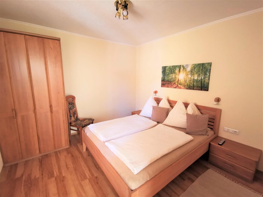 70 m2, completely equipped, incl. towels and bed-linen, anteroom, 2 bedrooms, big living-kitchen with dining-table and living-area, dishwasher, WLAN, cable-TV, Safe, separate entry, garden with barbecue