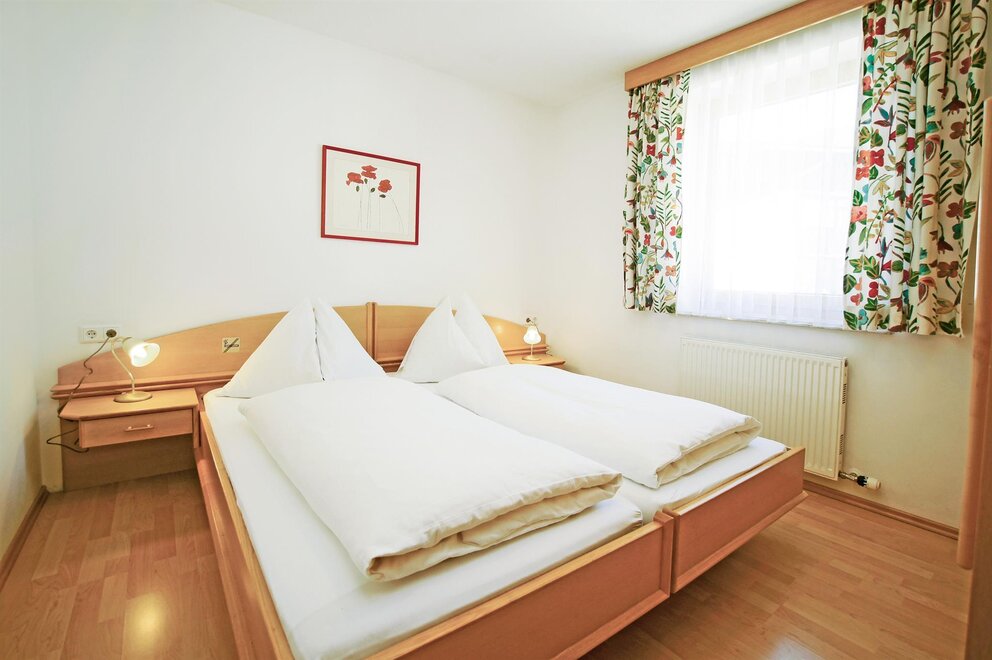 The apartment for 2 - 6 persons is on the ground floor and has 3 bedrooms, a living room, kitchen with dishwasher, electric cooker, oven, refrigerator, microwave, coffee machine and kettle, 2 bathrooms with WC, a separate WC, 2 flatscreen TVs, CD player, W-LAN, an infrared sauna and a terrace.