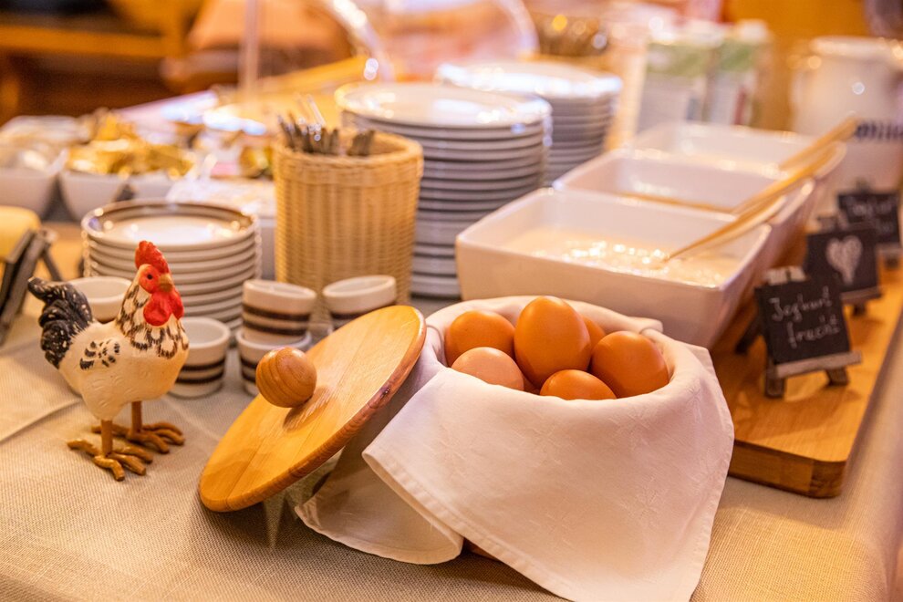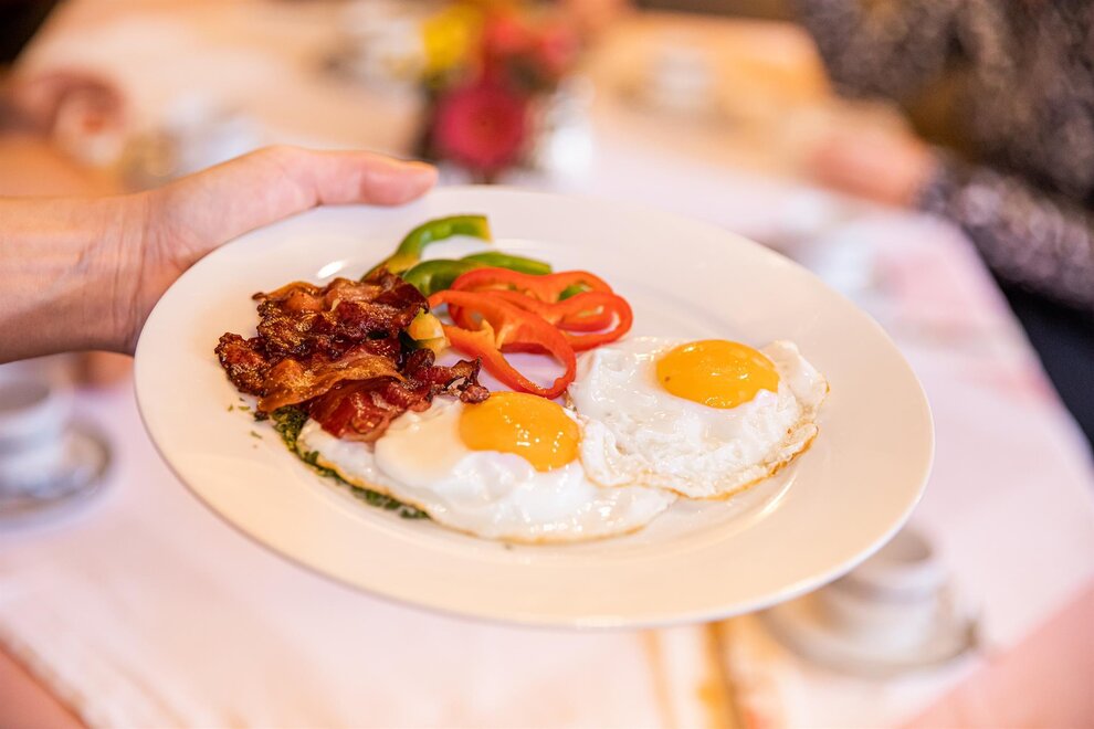 • Šunka a vejce, volské oko a míchaná vejce, na požádání čerstvě připravené