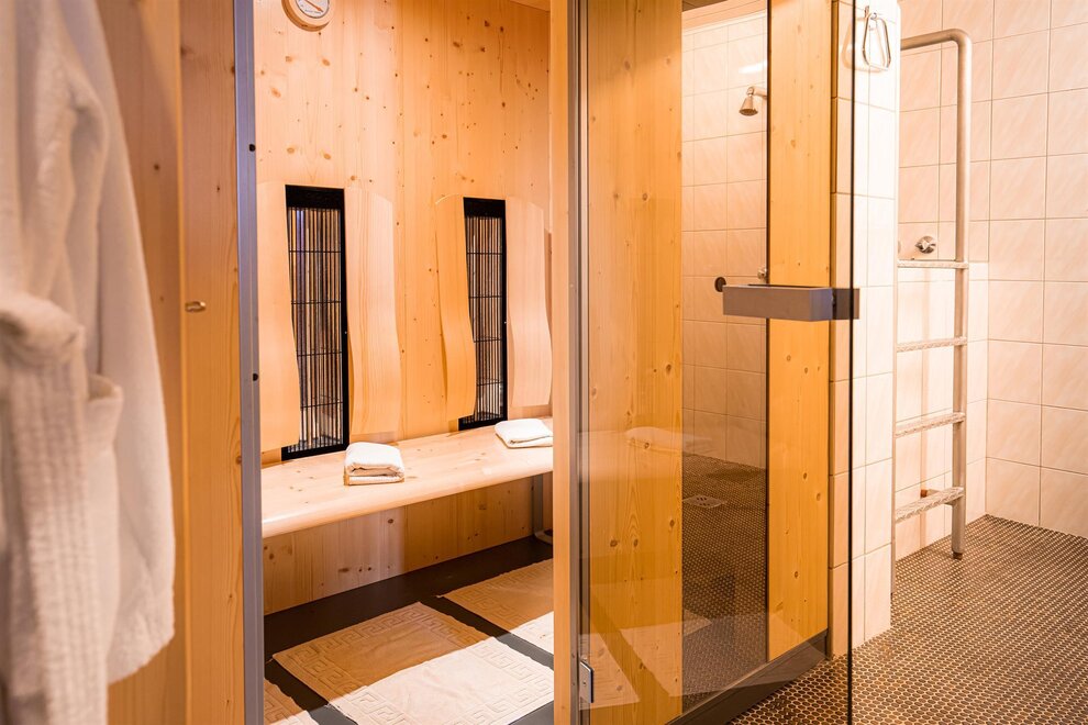 Díky své velmi centrální, ale přesto klidné poloze je náš dům ideální pro relaxační dovolenou. Útulná sauna s prostornou odpočinkovou místností. S finskou saunou a infrakabinou od Physiotherm nabízíme vše, co potřebujete k odpočinku po perfektním dni lyžování.