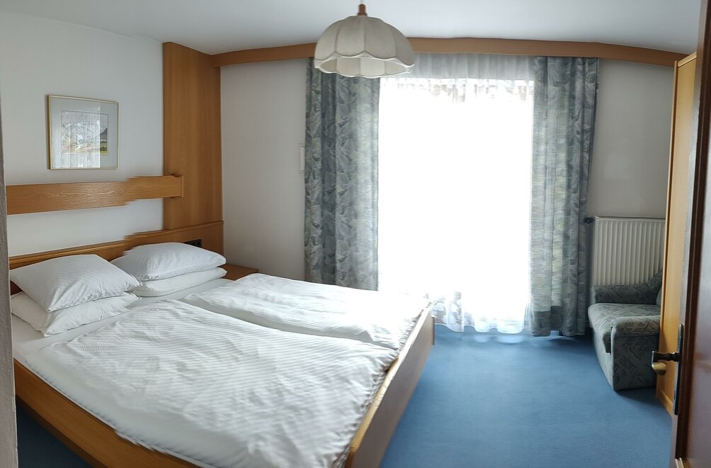 Apartment No. 2 on the 1st floor with 48 m² consisting of entrance hall with telephone and wardrobe. Bedroom with double bed, wardrobe and couchette, safe. Living room with pull-out double sofa bed, dining area.