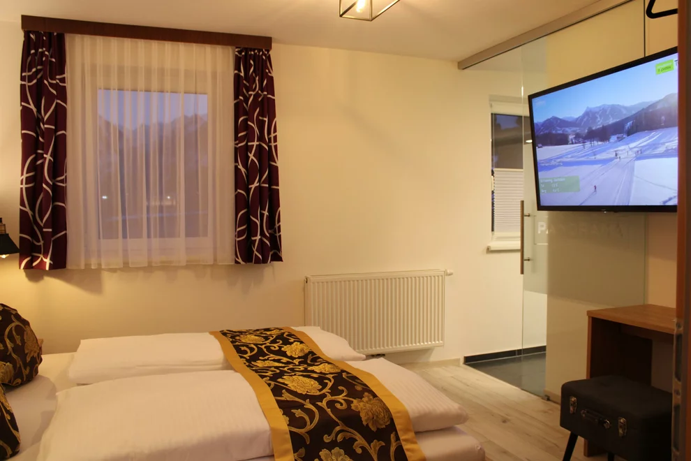 Probouzejte se každé ráno s úchvatným výhledem na Alpy. Užijte si sklenku vína na terase při ohromujících západech slunce a světelných efektech s výhledem na horskou krajinu Schladmingu.