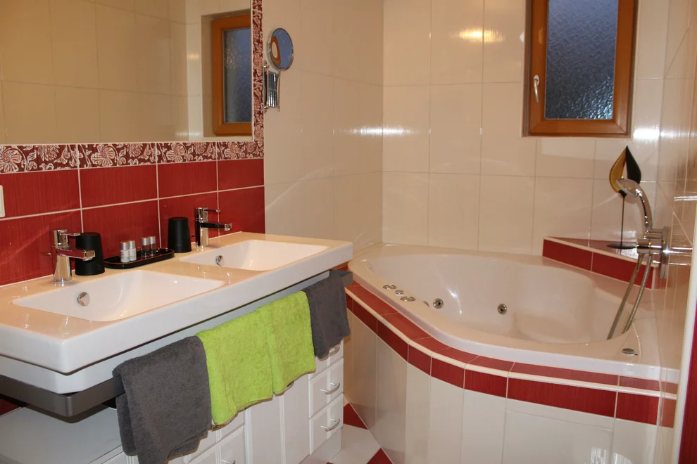 WC, dvojité umyvadlo, sprcha, WC, koupací vana, bathtub with integrated shower, umyvadlo, tekoucí studená/teplá voda, oddělené WC, počet toalet: 2, počet koupelen: 2, koupelna, WC, koupelna