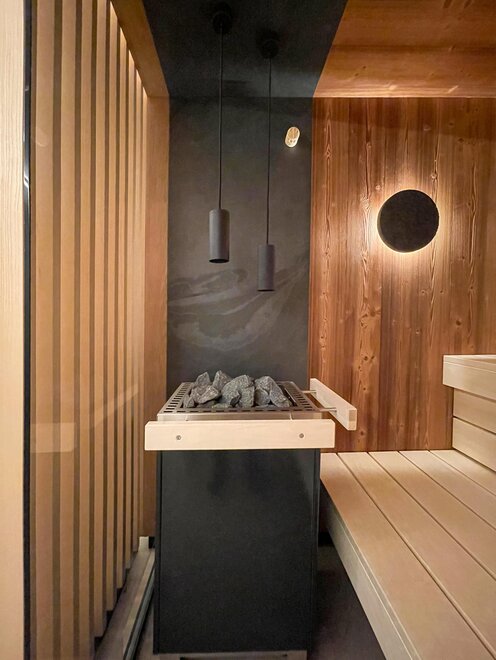 220m², 2 patra: prostorný obývací a jídelní prostor, krb, sauna, lyžařská a botová místnost, 5 ložnic pro 10-15 osob, 5 koupelen.