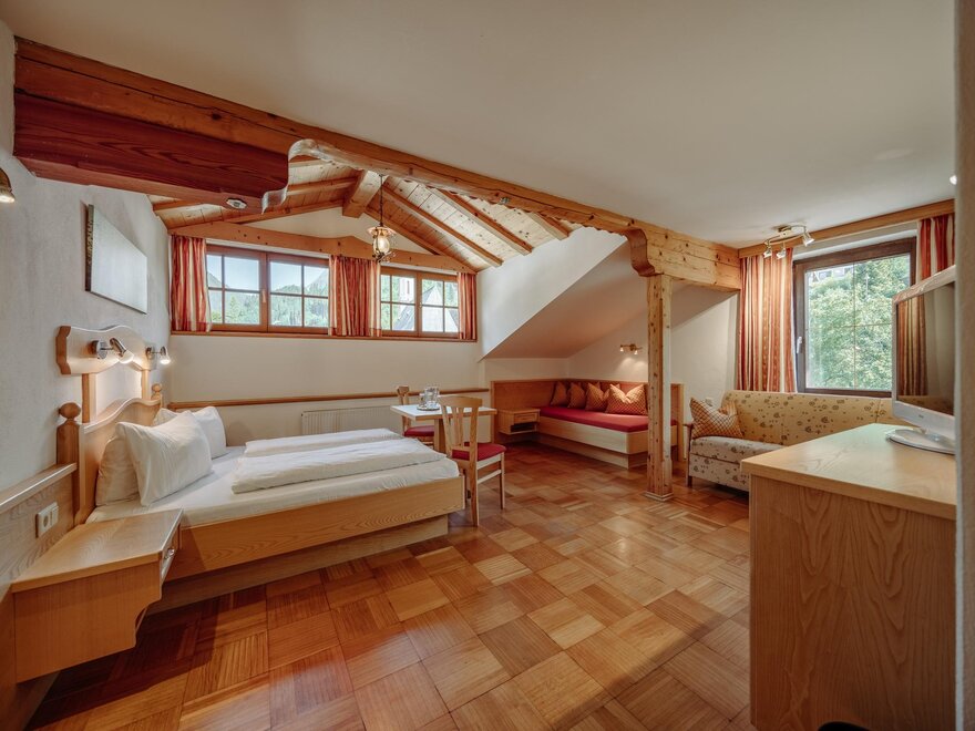 Spacious family room, ideal for families with 2 children, approx. 35m²: 2 bedrooms (one double bed sleeping room, connecting door, one sleeping room with 2 single beds) bathroom with shower, WC, flat screen in each bedroom, balcony