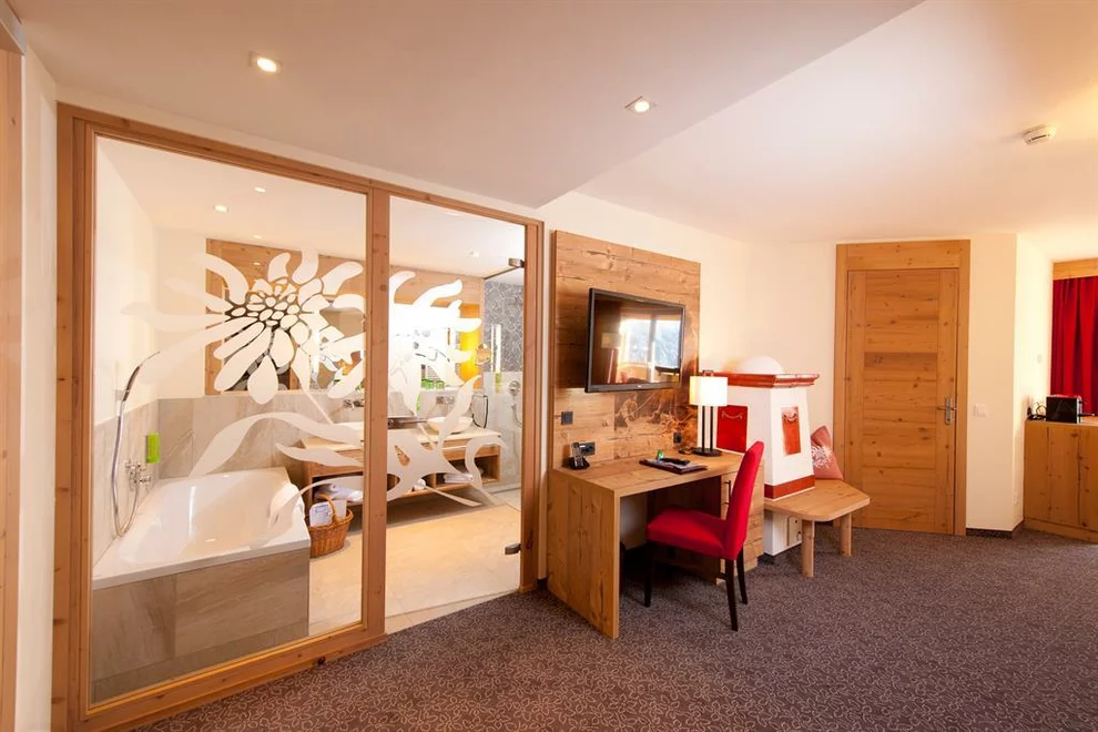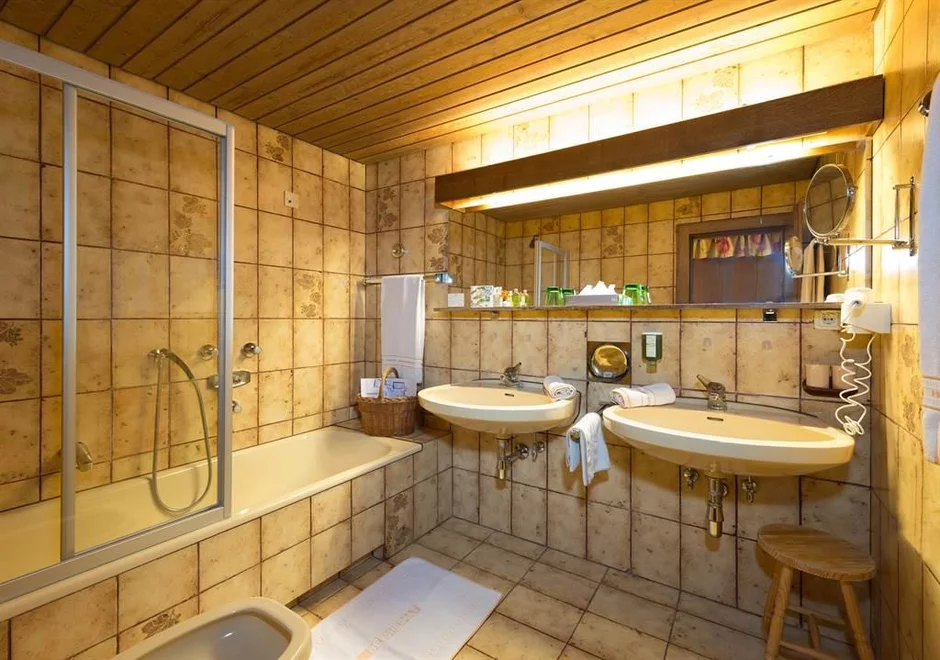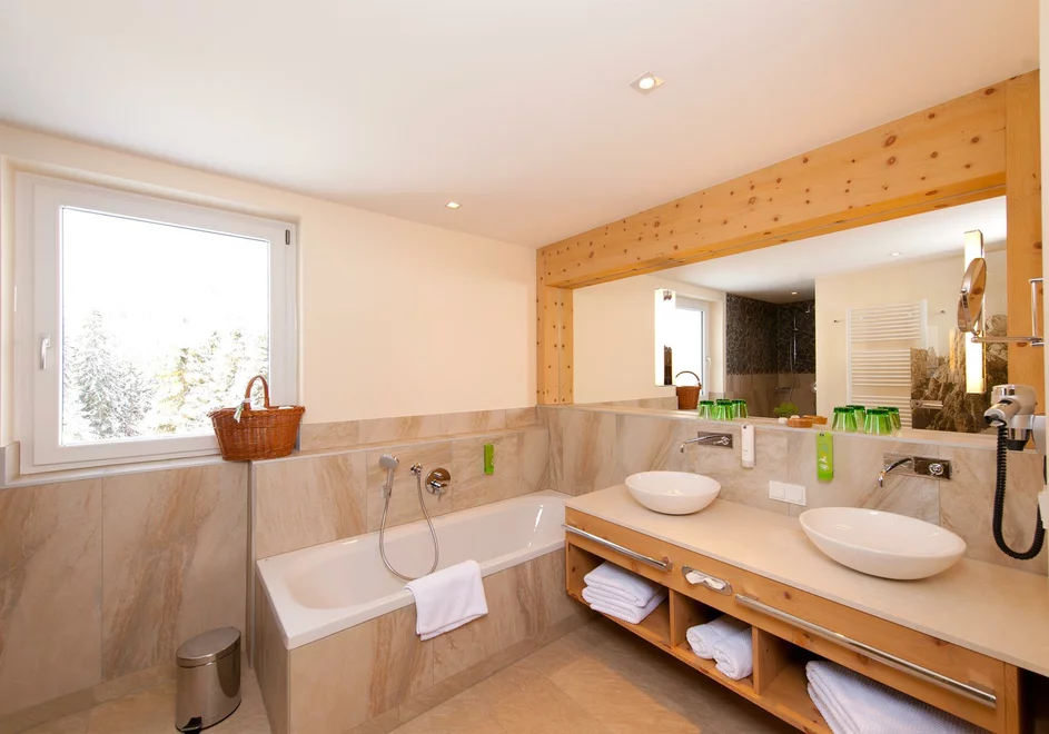 luxusní koupelna s bezbariérovým komfortním sprchovým koutem, vanou, bidetemNOVINKA: Apartmá v horském domově Residenz - alpský životní styl spojený s tradiční pohodlností. Domácké smrkové staré dřevo, zdravé borové dřevo, vznešené lodenové látky, světlem prozářené koupelny a velké okenní plochy Vás nadchnou. S zařízeným jižním balkónem nebo velkou rohovou lodžií, obývací ložnice s nadměrným dvojlůžkem, volitelně s extra ložnicí, kombinovanou s dřevěnou nebo kobercovou podlahou, krásným posezením s kachlovým kamenem a 2 plochými televizory Luxusní koupelna s prostorným sprchovým koutem, vanou, extra WC a bidetem, ideální pro páry s vkusem pro výjimečné, rodiny s až 4 dětmi, pro 2 páry nebo pro 2 osoby, které chtějí spát odděleně. Vyberte si ze 3 typů: SWEET "Zirbe", "Nathalie" nebo "Stefanie"