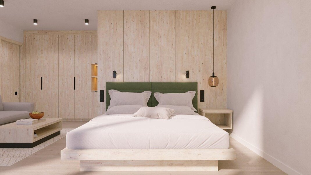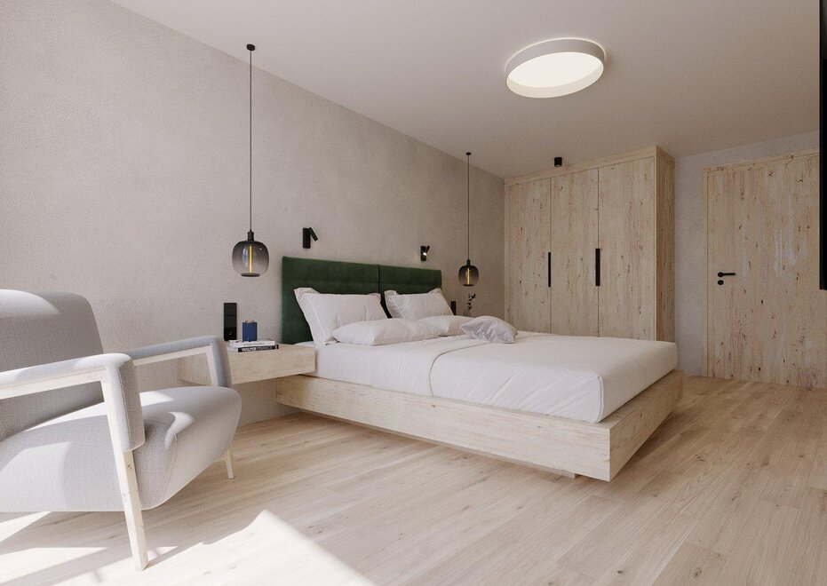 Krásný prostorný rodinný pokoj 40 m² se dvěma oddělenými ložnicemi, balkonem, podlahou z dubového dřeva, koupelnou s bezbariérovým sprchovým koutem, rádiem a odděleným WC, fénem, útulným obývacím prostorem, pracovním stolem, 48" kabelovou TV, sejfem, širokopásmovým internetem, telefonem a parkovacím místem.