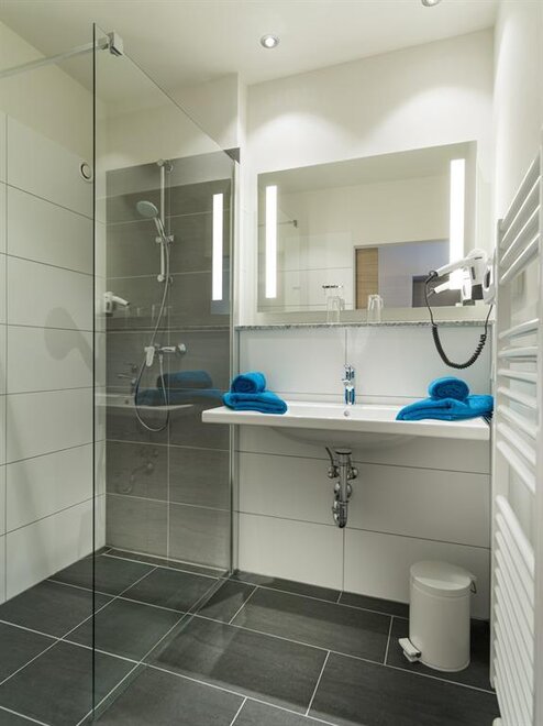 Our modern designed rooms are made of precious materials with wooden floor, sofa bed, some with folding bunk bed, balcony, desk and all useful comfort such as: telephone, safe, TV, W-LAN, hair dryerSanitární vybavení