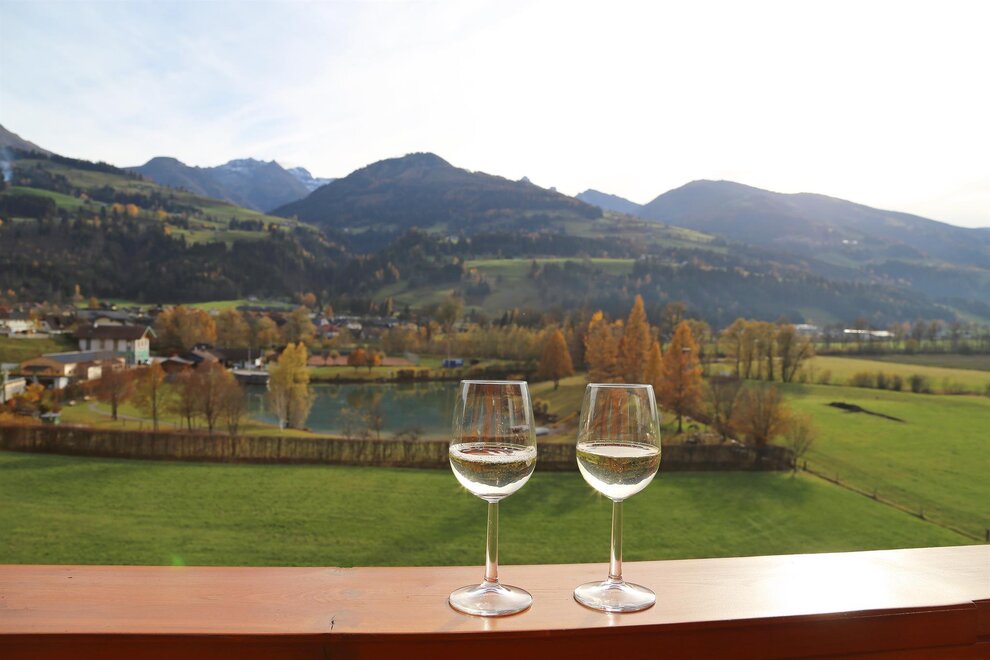 Vyhlídka z balkonu na okolní horskou krajinu a Aicherské koupací jezero je prostě úchvatná.