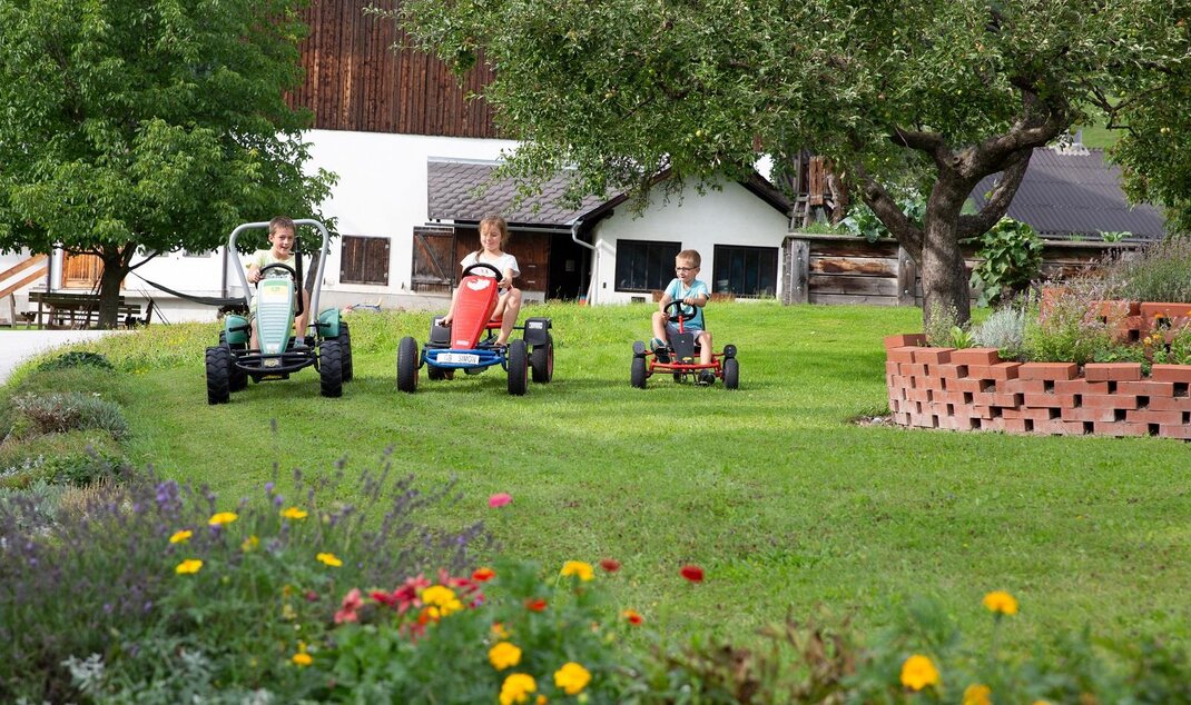 A co děti? Ty se honí na gokartéch a traktorových šlapacích, hrají si v dětské herně, hrají ping-pong nebo objevují přírodu na loukách a v lesích za farmou...