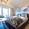 Our Deluxe Apartment Snowy for 2-3 Persons features a comfortable Boxspringbed, open bathroom with rain shower, modern furnished kitchen, sleeping couch, dining area, balcony, Smart TV, WIFI, separate toilet.