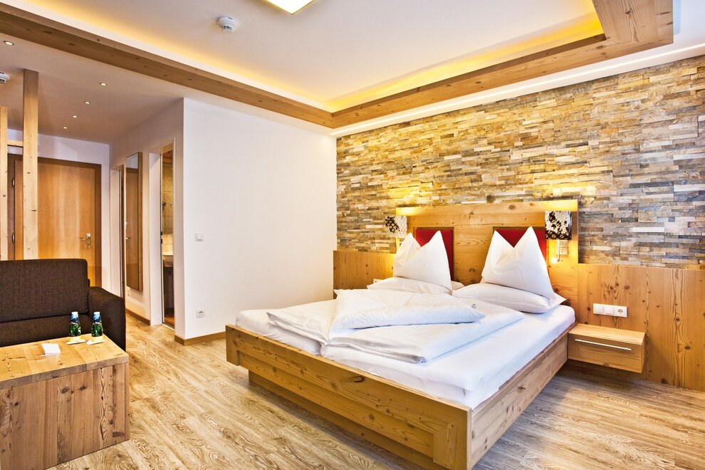 Room "Mitterspitz without balcony" - yet just as comfortable and spacious as all our other rooms. 30 m² in size. Further details under: www.alpenhof.com
