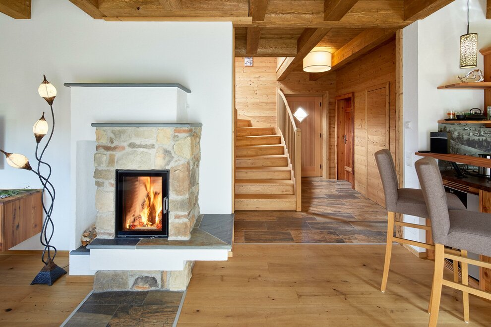 120qm * Spacious living area with cozy sofa * Fireplace * 3 waste wood bedroom with 2 spacious bathrooms * waste wood kitchen with a cozy dining area * SalzsteinInfrared sauna with relaxation room * Storage room with boot dryer * Toilets * FLAT-TV