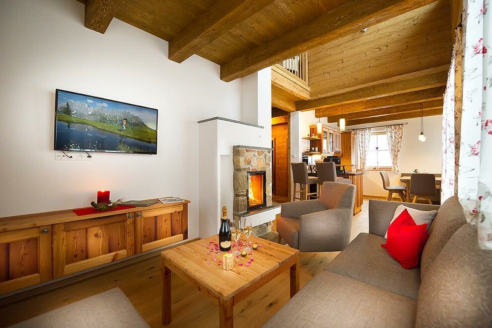 95qm *Large living area with cozy sofa *Fireplace *2 waste wood bedroom with spacious bathrooms *Waste wood kitchen,cozy dining area * SalzsteinInfrared sauna with relaxation room * Storage room with boot dryer * Toilets * FLAT TV / BoseSound *WLAN