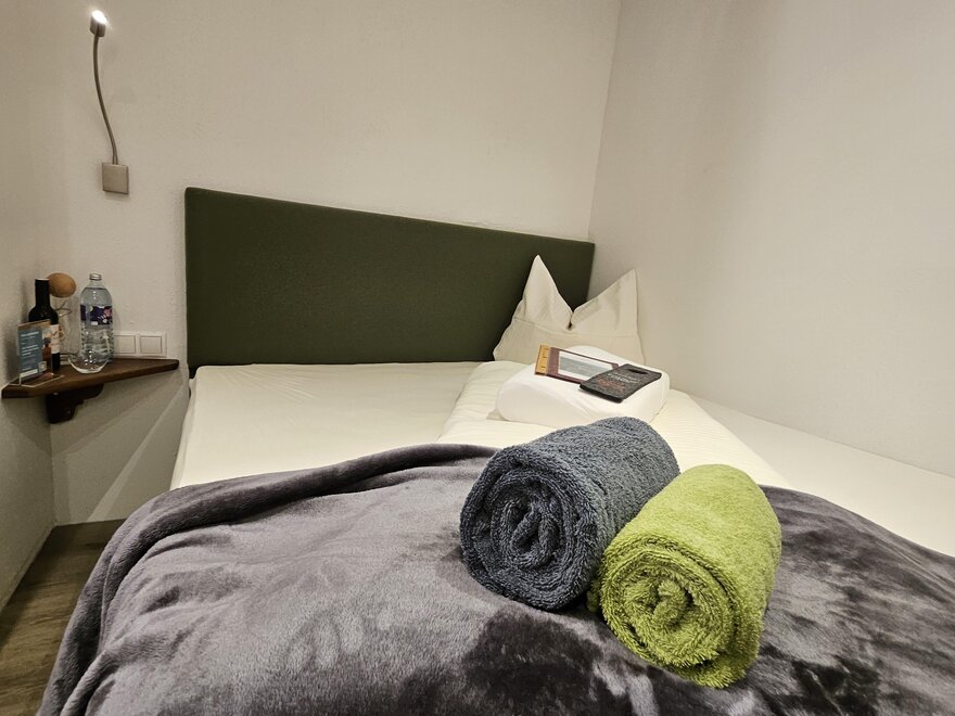 Newly renovated single rooms with mountain views, refrigerator and safe