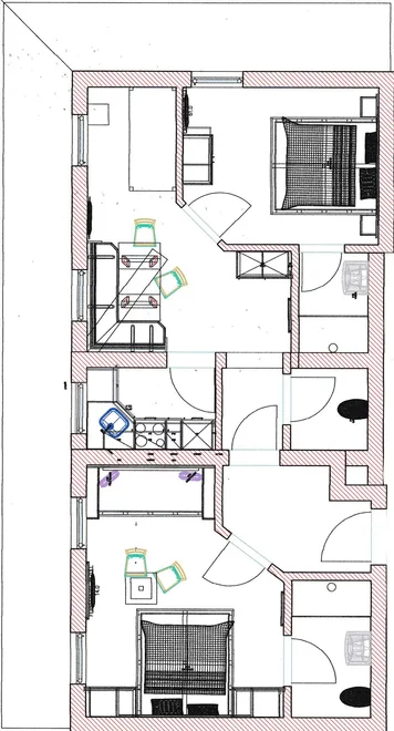 Jedna ložnice pro 2 osoby s koupelnou/WC odděleně a KTV