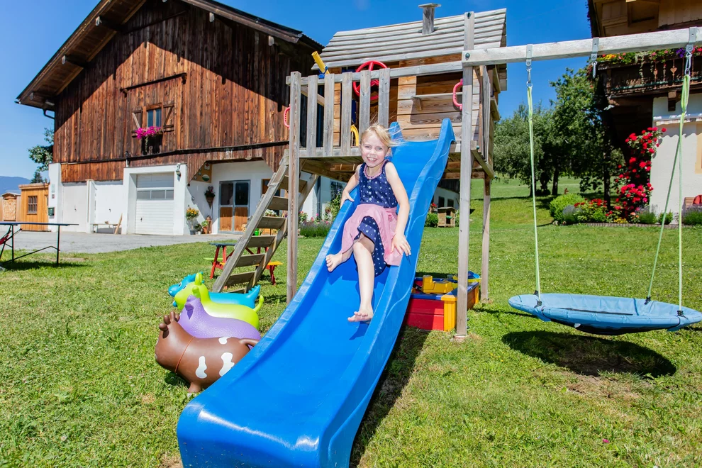 Děti si obzvlášť užívají dovolenou na farmě v Salcbursku, protože kolem Schönberghof se děje vždy něco! Hodně volného prostoru na hraní a velké hřiště, které také zajišťuje zábavu. Krávy sice v létě převážně pobývají na pastvě, ale v čase dojení přicházejí každý den do stáje. Prosíme však o pochopení, že děti na našem hospodářství nemohou pomáhat se stájem a také není možné jezdit na traktoru. Ale naše koťátka a králíci se také rádi nechají pohladit a mohou být klidně také krmena.