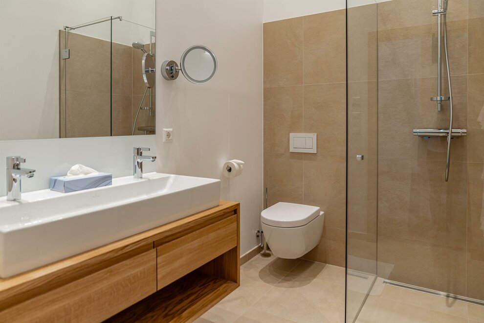 Vybavení: 2 ložnice s luxusními kingsize boxspring postelemi (částečně s 2 přistýlkami) | otevřená obývací kuchyně s manželskou pohovkou | 2 koupelny se sprchou/WC, fénem & sušákem na ručníky | prostorná terasa či balkon | trezorVybavení pokojů