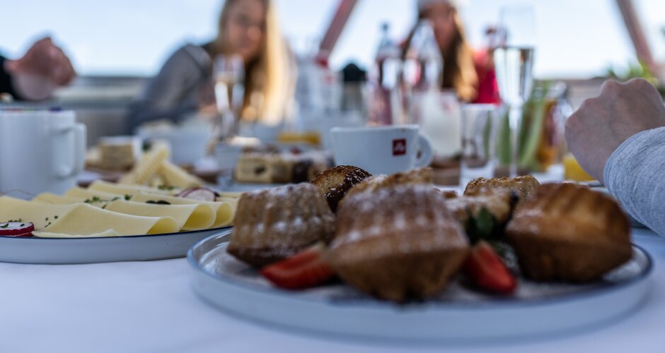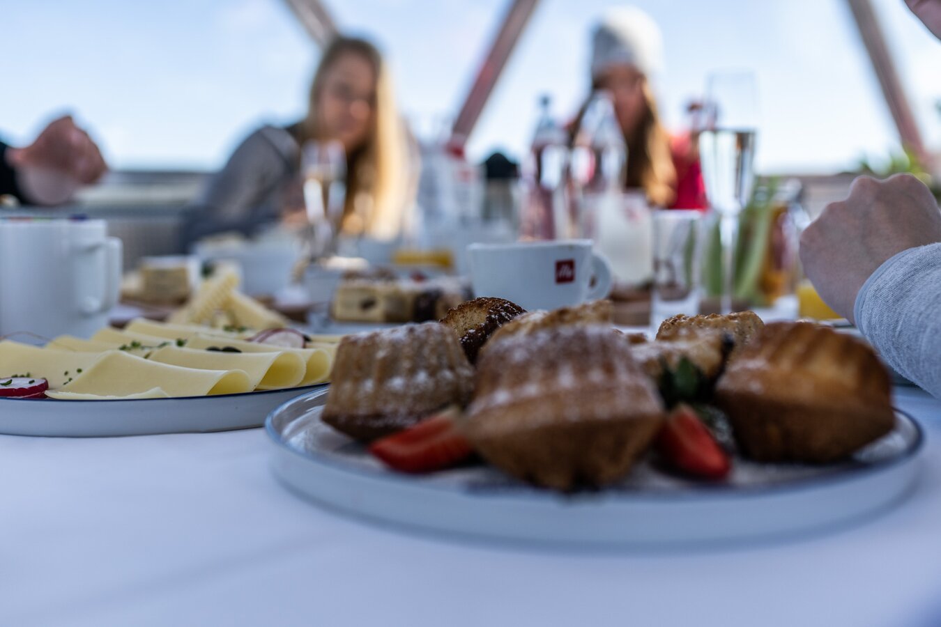 The Goldbergbahn cable car takes you comfortably up to the mountain station at an altitude of 2,650 meters. Once you arrive at the mountain station, you hike to the summit cross of the Kreuzkogel at 2,686 meters with a local guide to enjoy the spectacular view of over 400 mountain peaks. The gourmet breakfast lures you into the legendary glass and aluminum dome by the famous architect and designer Gerhard Garstenauer. The design of the visionary dome provides a 360-degree panoramic view of the fascinating mountain world of the Hohe Tauern National Park. An impressive view and freshly prepared regional dishes are the ingredients for an unforgettable summit breakfast.