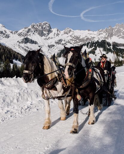Nádherná scenérie a pomalá jízda na saních vás okouzlí. Romantické pocity zaručeně potrvají déle než samotná vyjížďka, která je mimochodem ideální pro vážně míněnou žádost o ruku. Příležitostí k tomuto zážitku určitě bude více než dostatek. Jen v oblasti Schladming Dachstein najdete 86 spřežení, z nichž se většina nachází v Ramsau am Dachstein, což je štýrská obec s největším počtem koní.