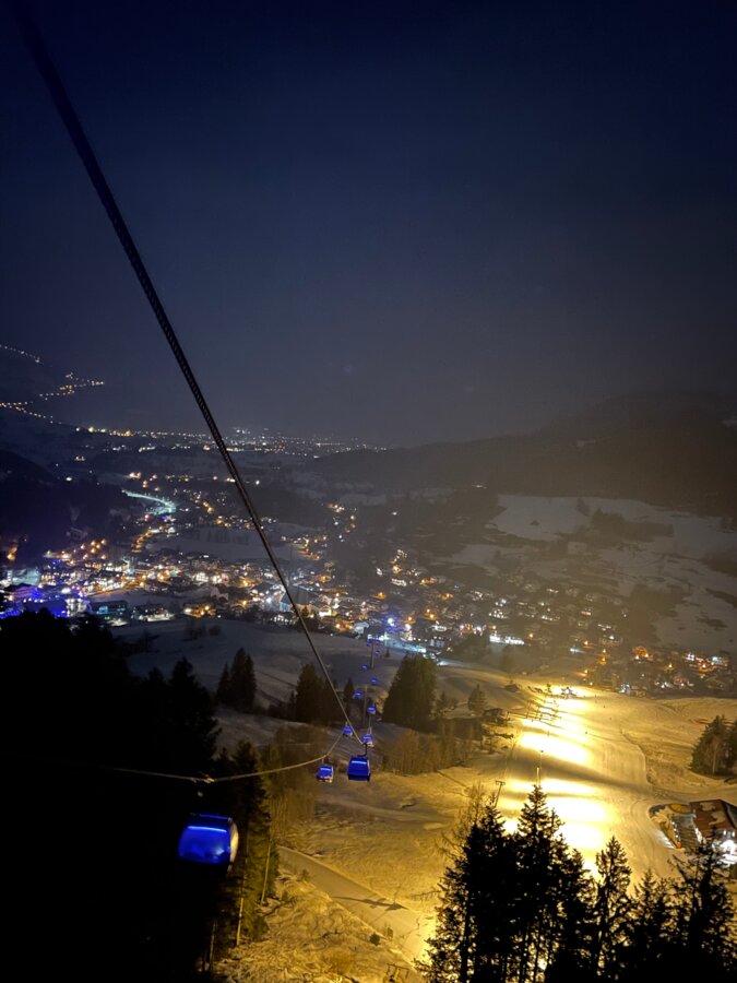 Bei diesem Dinner in luftigen Höhen wird himmlischer Genuss erlebt. Bei jedem Eintreffen in die Bergstation wir der nächste Hochgenuss serviert, der Weinvorrat aufgefüllt und kurz mit dem Servicepersonal der Tom Almhütte geplaudert. Anschließend geht es wieder talwärts, beschäftigt damit den nächsten Gang sowie die herrliche Aussicht auf Maria Alm bei Nacht zu genießen.