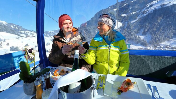 Sechs Gipfel, insgesamt 35 durchgehende Pistenkilometer und ein Höhenunterschied von 7.500 Metern werden um ein ausgezeichnetes Gourmetmenü bereichert. Das Beste daran: Sie müssen sich nicht einmal zwischen den erstklassigen Genusshütten entscheiden. Jede Hütte wird für Sie einen Gang vorbereiten.