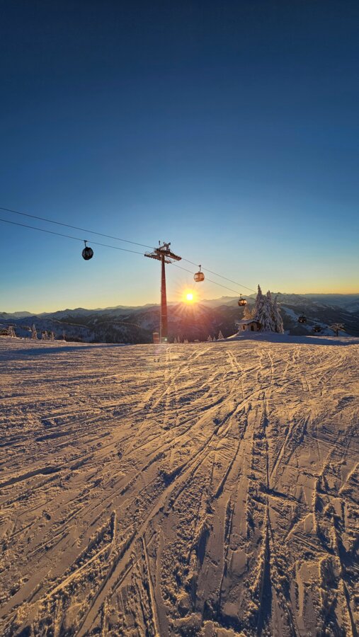 Lieber ausgiebig den Sonnenuntergang beim letzten Run des Tages genießen 😉