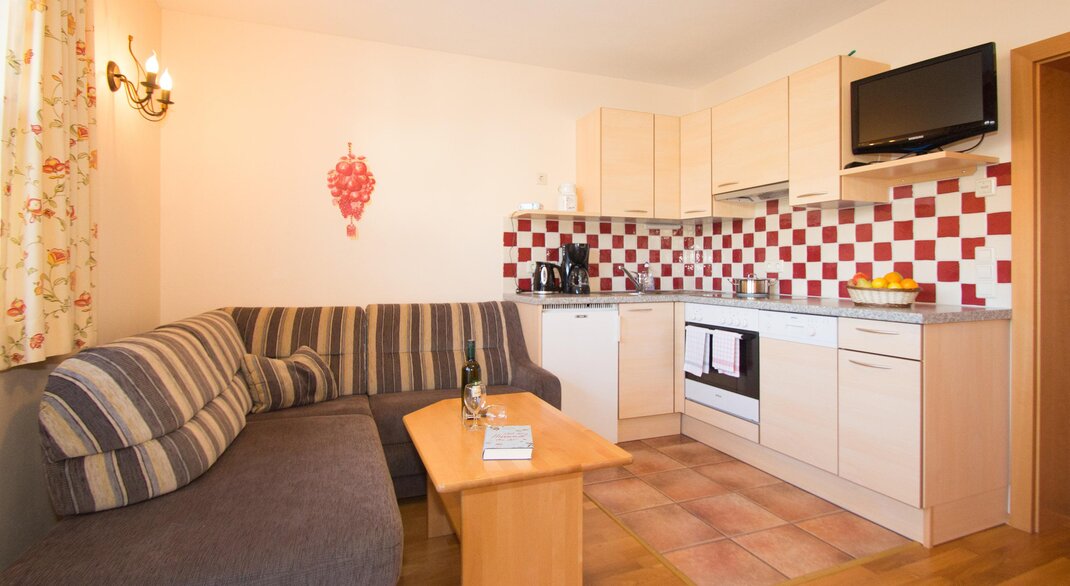 Appartement 35m² mit Wohnraum und voll eingerichtete Küche, getrenntem Schlafraum, Dusche, Waschbecken und WC, TV, Radio, W-Lan und Telefon. In der Wohnküche ist ein Sofa für 1 Personen.