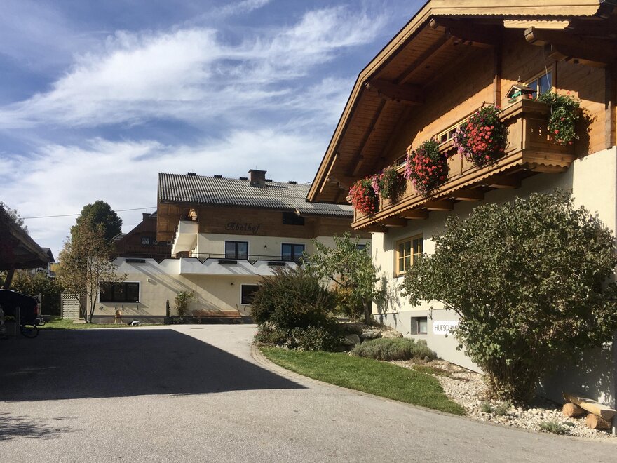 Fahren Sie die Rohrmoosstraße ca. 3 km entlang, 30 m vor dem Kreisverkehr in Rohrmoos ist unsere Einfahrt auf der rechten Seite zum Haus.