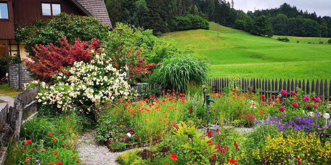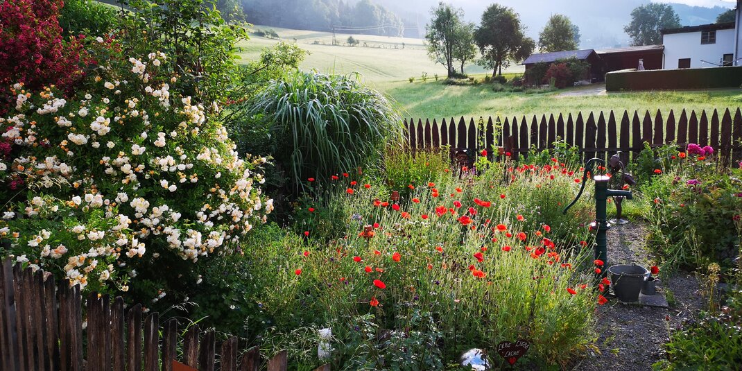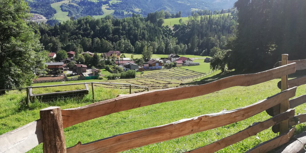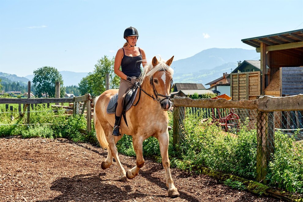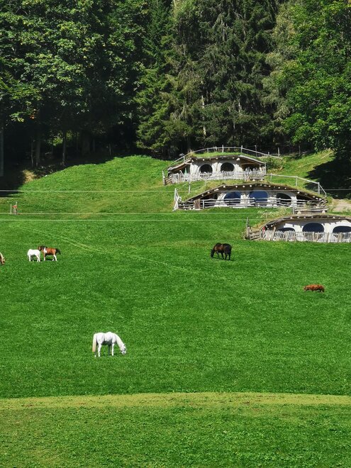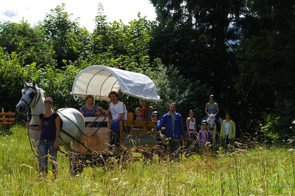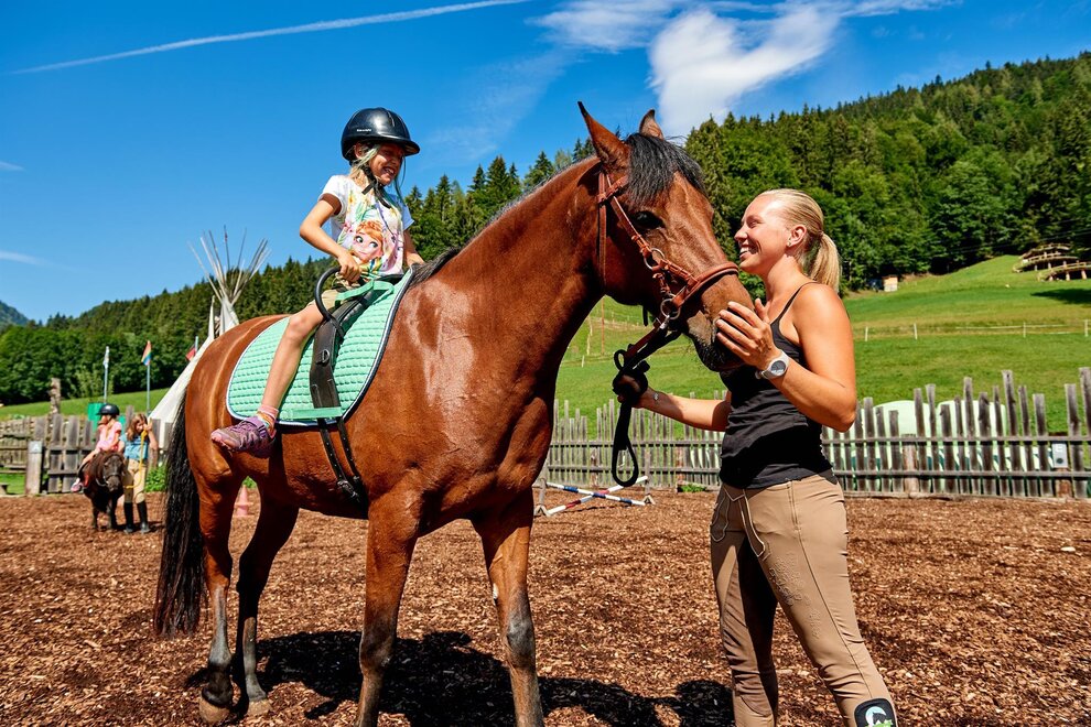 Sommer: Reiten, Fischen, Bogenschießen. Abwechslung und Gemütlichkeit, Ponywanderung, Traktorfahrt, Kletterwand. Am Dorfrand - freie Aussicht auf die umliegende Bergwelt, von 40.000 qm Wiese umgeben - viel Platz zum Herumtollen.