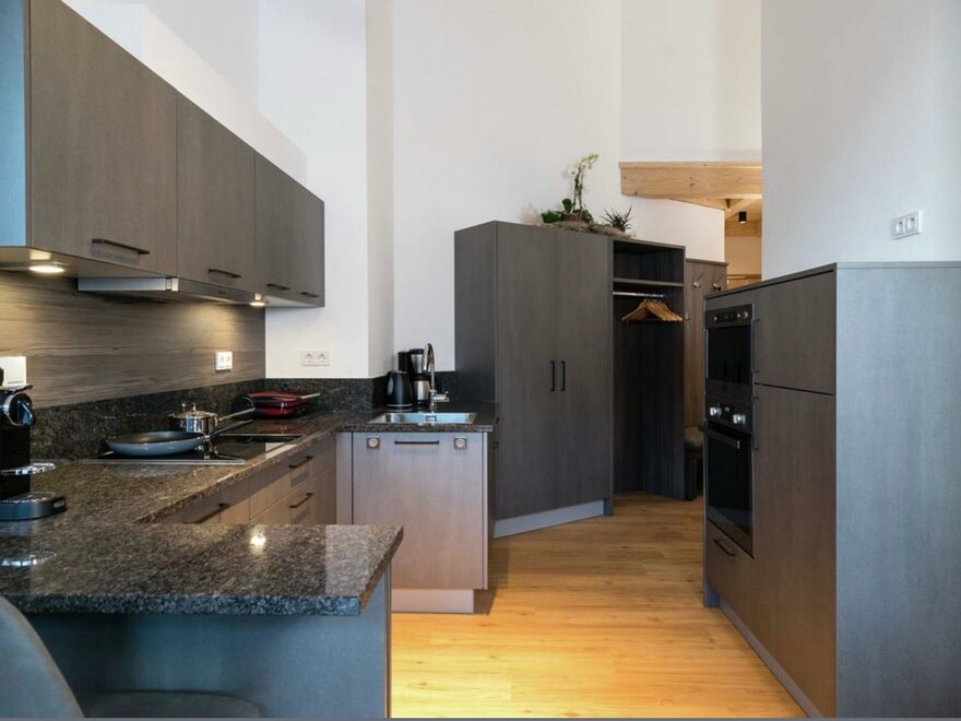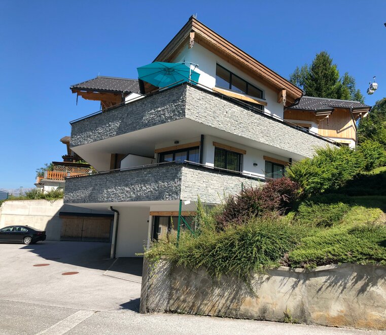 Die Wohnung befindet sich im obersten Stock des Chalet Hirschkogel, hat eine Fläche von 120 m2 und bietet Platz für 10 Personen. Es ist über eine Treppe und einen Aufzug erreichbar. Es gibt 4 Schlafzimmer, 3 Badezimmer mit WC und ein separates WC.