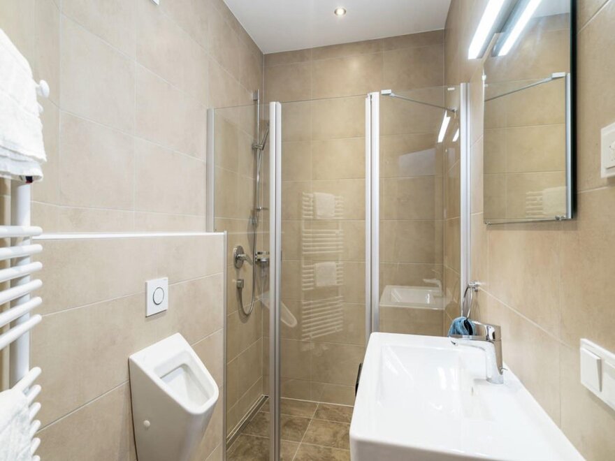 Die Ferienwohnung verfügt über 3 adäquate Duschbäder mit WC. Die Sauna des Hauses können Sie gegen eine geringe Gebühr nutzen.