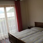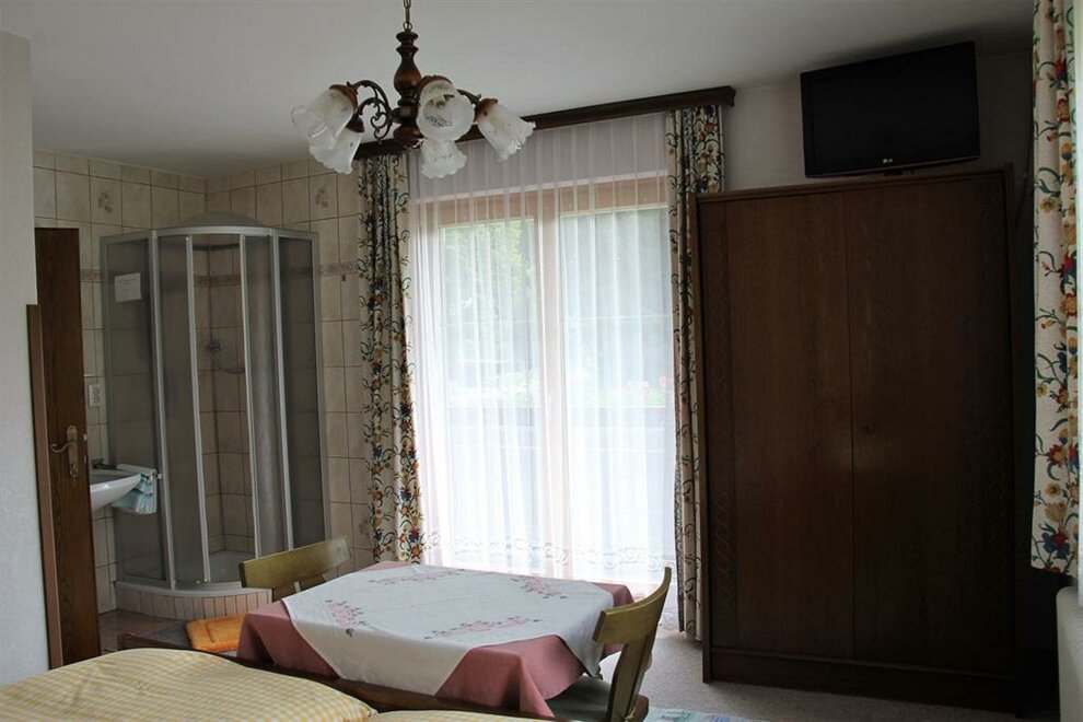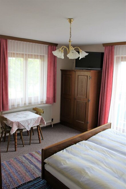 Nette Doppelzimmer mit Fernseher und Dusche, Zugang zum Balkon. WC am Gang