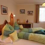 Komfortables Dreibettzimmer mit Dusche und WC, Balkon, Kabel-Flat, Radio, Safe und gratis W-LAN.