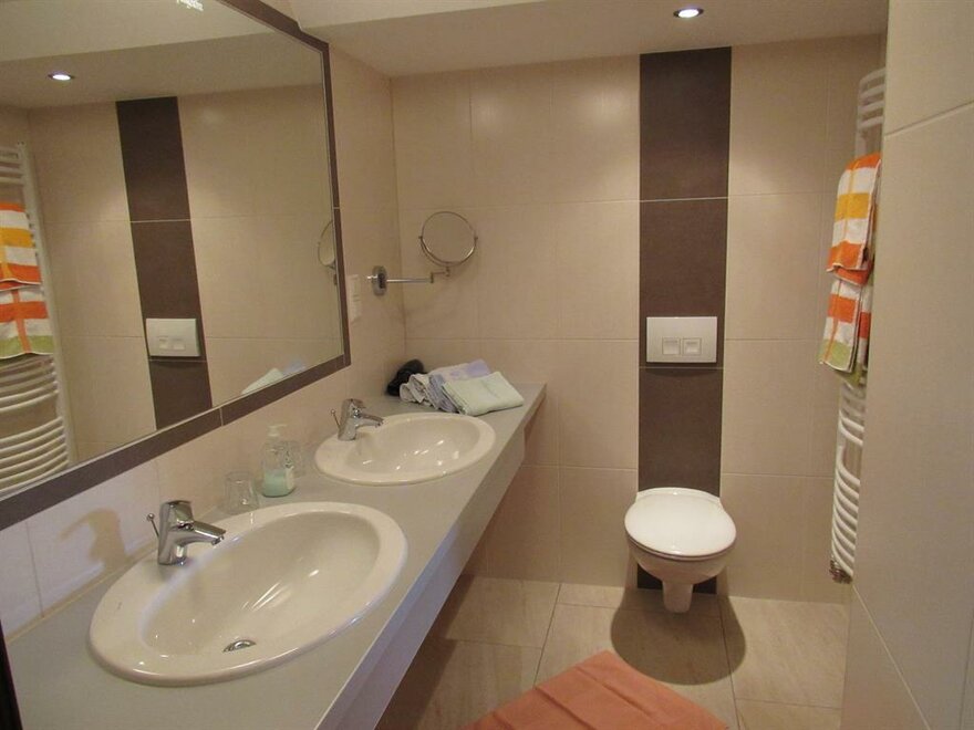 Komfortable Doppelzimmer mit Dusche und WC, Balkon, Kabel-Flat, Radio, Safe und gratis W-LAN.