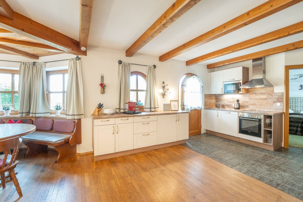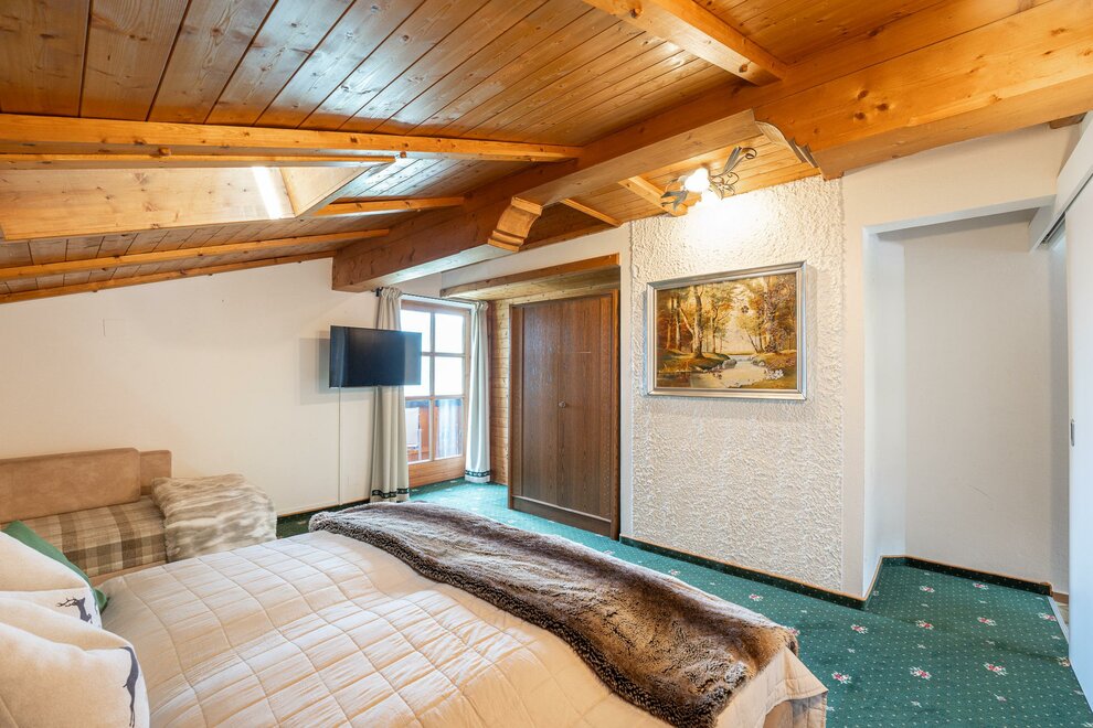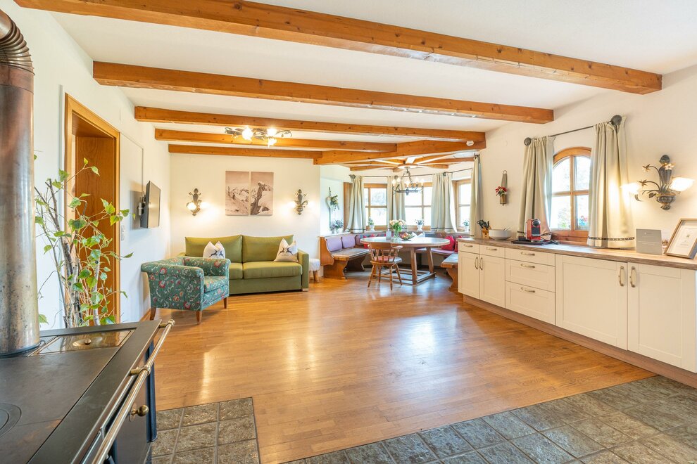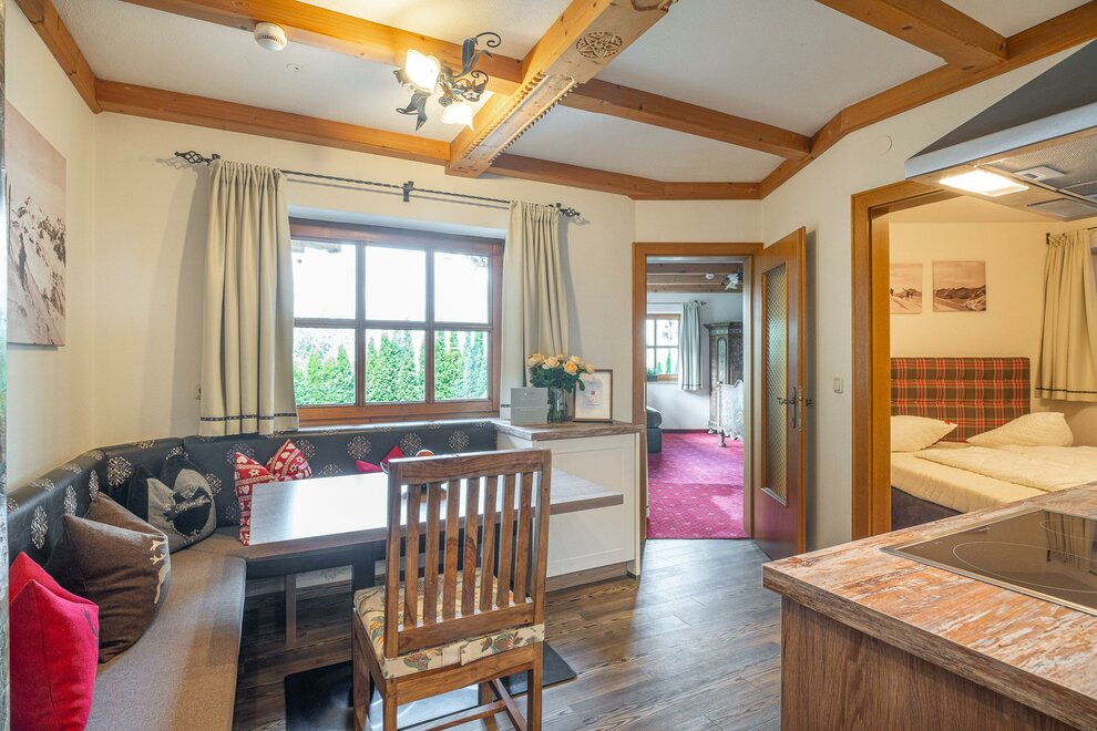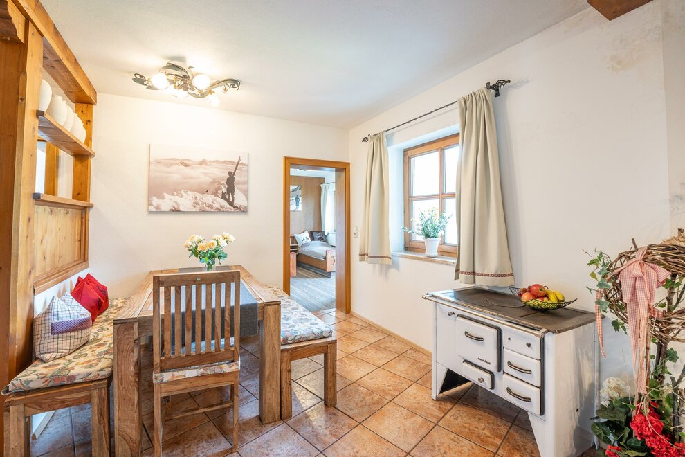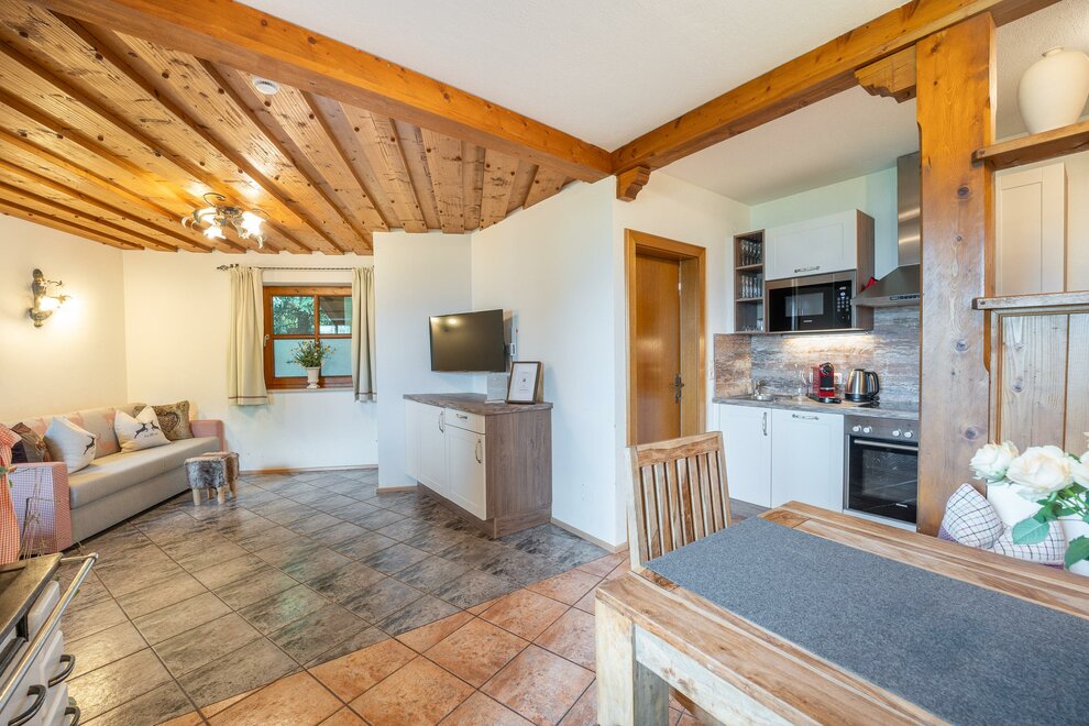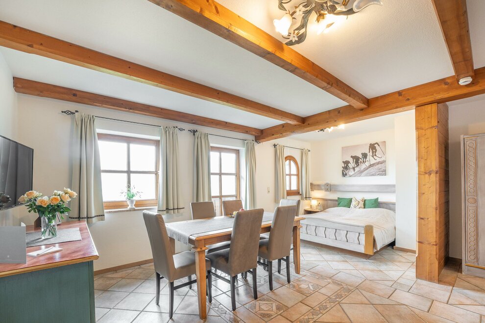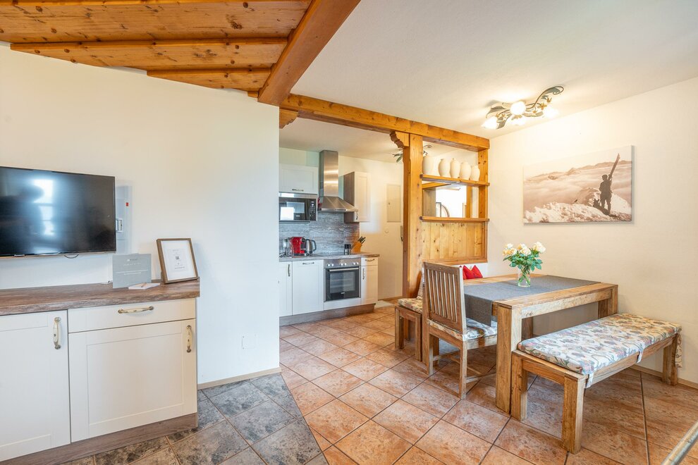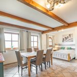 Das Apartment im Obergeschoss verfügt über einen Schlafraum für 2 Personen und einem Wohn-Schlafraum für 4 Personen. Es stehen eine vollausgestattete Küchenzeile und ein Bad mit Dusche und WC zur Verfügung.